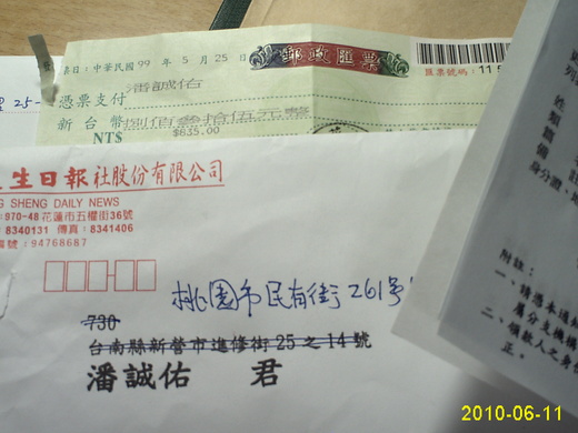 耶!收到花蓮更生日報2到5月的稿費了,