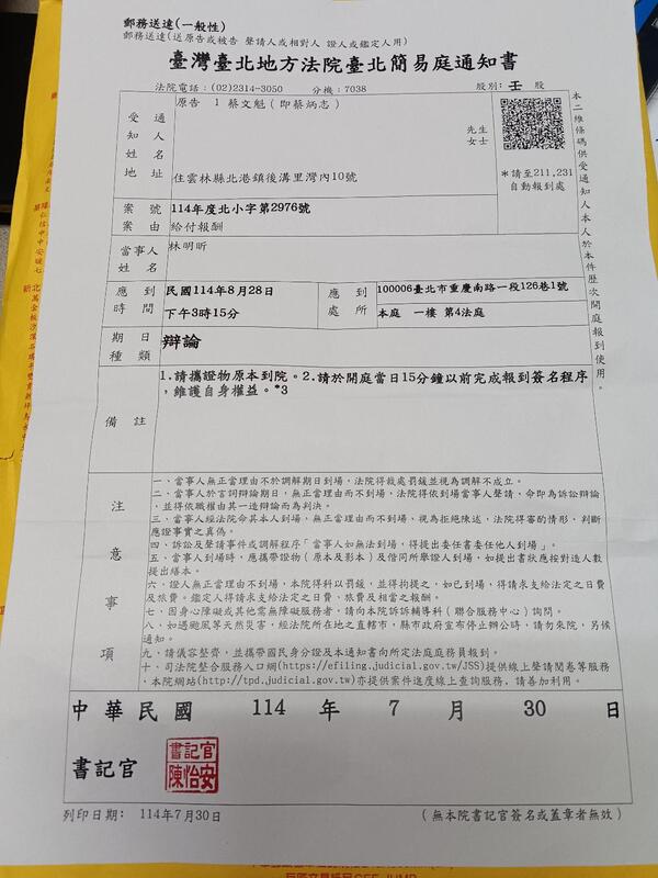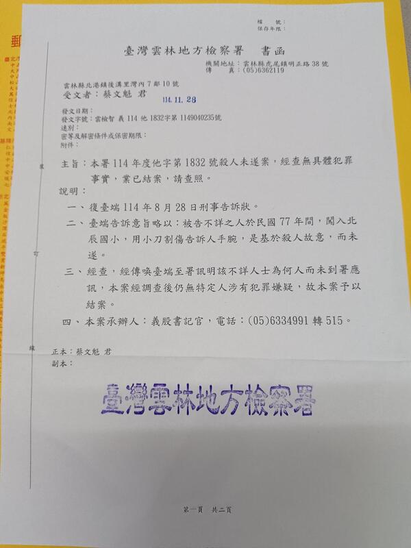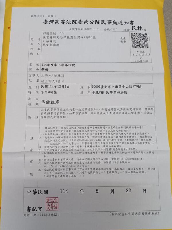 收件者: 文魁 蔡 ,Bartw ,社團法人雲林律師公會 ,仁淼 李 ,文生 蕭 ,信華 吳 ,庭榕 蔡 ,侯宜均 ,揚成 許 <415037@ems.hccg.gov.tw>,myjf19@gmail.com 隱藏