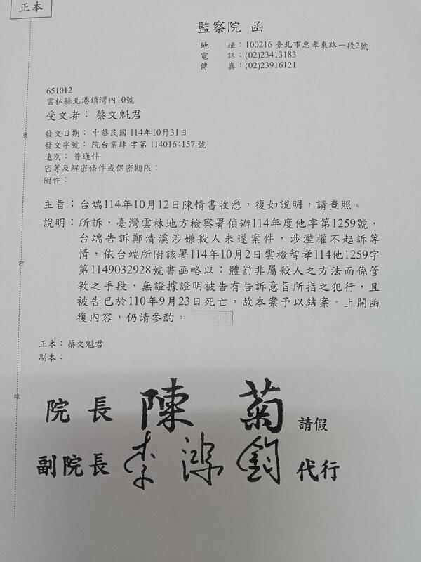 您可點選此連結查詢信件處理狀況。[信件查詢連結]
