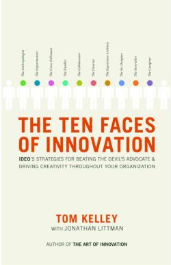 「The Ten Faces of Innovation: IDEO's Strategies for Defeating the Devil's Advocate and Driving Creativity Throughout Your Organization」(中譯:決定未來的10種人:10種創新,10個未來/你屬於哪一種?)是由全球頂尖的設計諮詢公司IDEO的總經理,Tom Kelley (湯姆.凱利) 在2008年10月份所出版的,書中所談的十種創新角色,都是在企業裡運用自己的槓桿、工具、技能,和自己的觀點來進行創新,因為組織所有偉大的活動,最終還是要由人來執行,如果能把這些能量、智慧,適當的槓桿結合起來,他們就能發揮驚人的力量,所以領導者要確認這些人就在你的團隊之中,而且一起共同合作,就能做出一番轟轟烈烈的大事業。。
