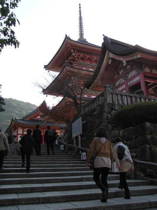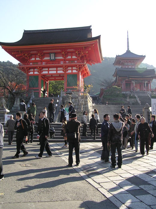 京都的清水寺,不管在什麼時候,阿彌陀佛堂的大木平臺上,總是熱鬧哄哄的。