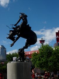 Calgary Stampede 是在 1912 年九月由一位加拿大美國人 Guy Weadick 突發奇想,向當時的 BIG 4 等牧場主人們集資十萬元而舉辦的狂野西部牛仔競技比賽,獲得各地牧場牛仔們的積極參予而大獲成功。爾後每年就有這種活動了。