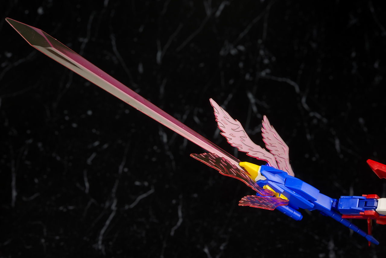 柄の周りのエフェクトクリアでも再現されてるのでかなり派手め。柄には穴があり保持はダボ付きの持ち手を使用。
