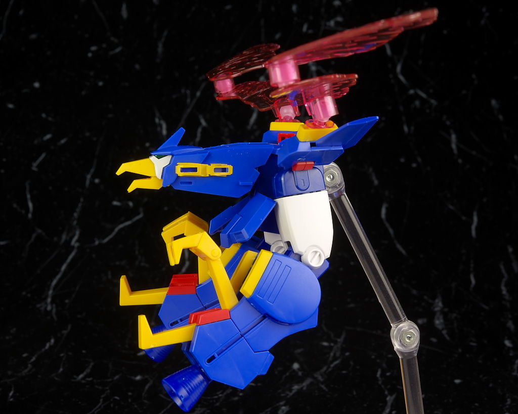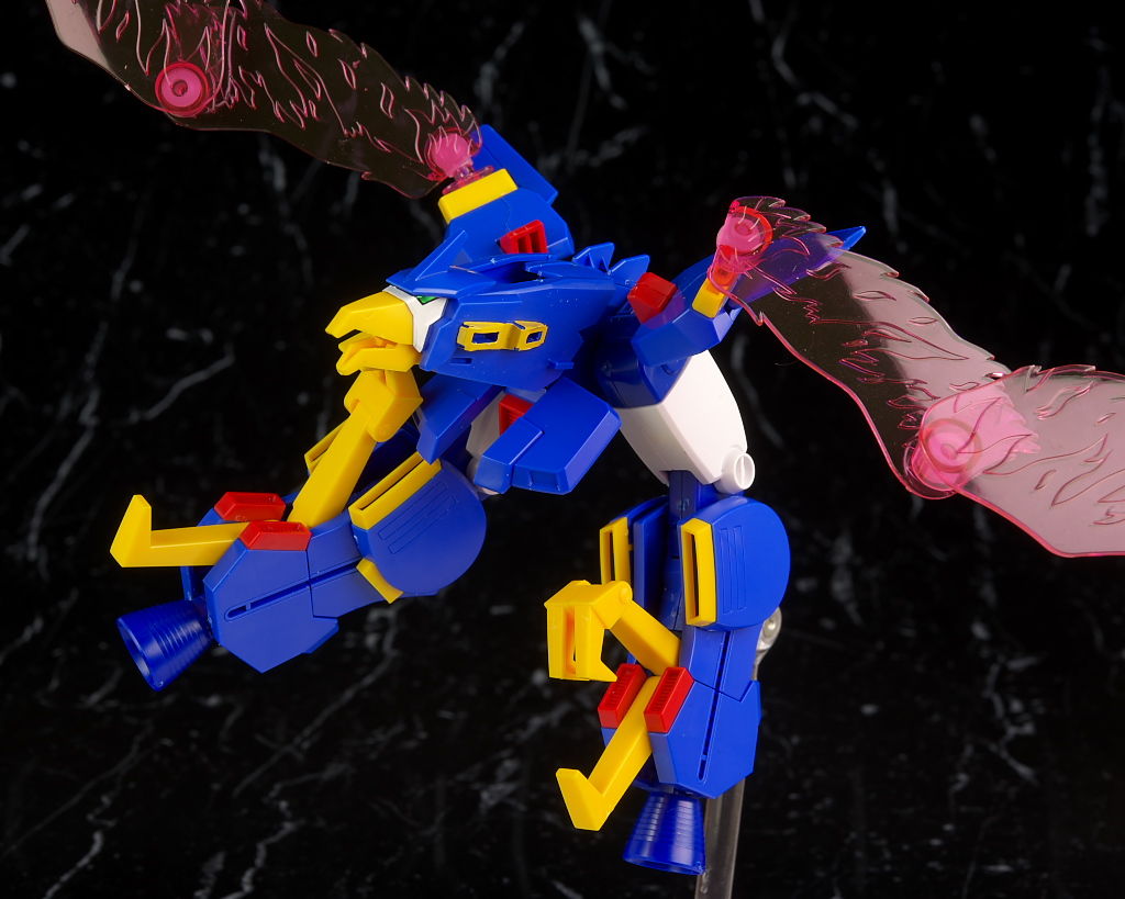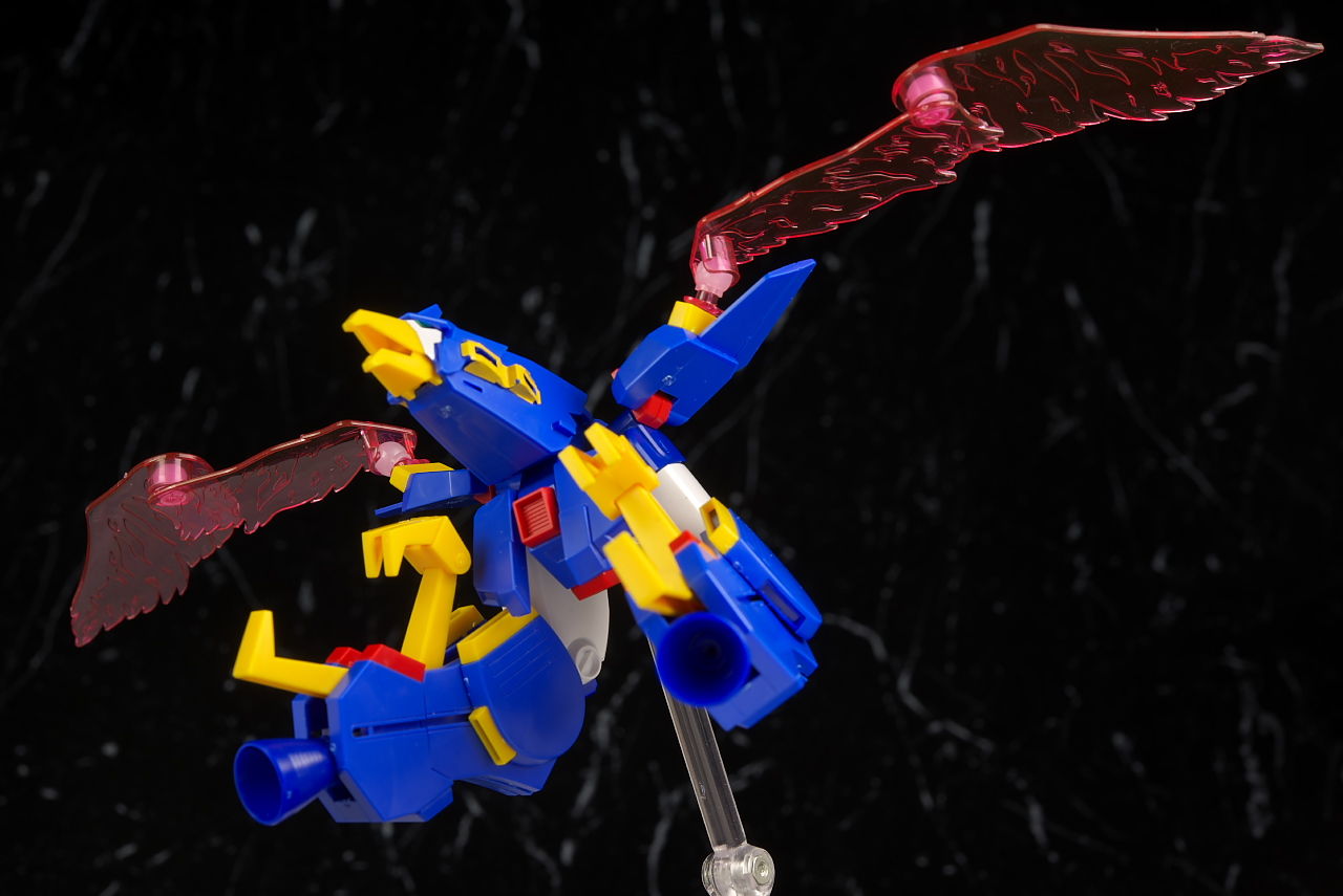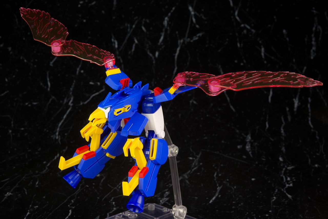 サイドアーマーに差し替え用光の翼パーツを取り付け膝を逆関節にしたら鳥型の飛行メカのソラトライオン完成。
