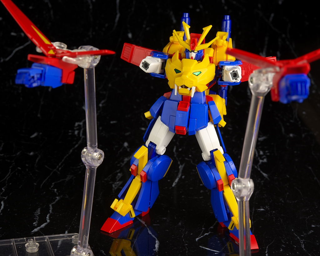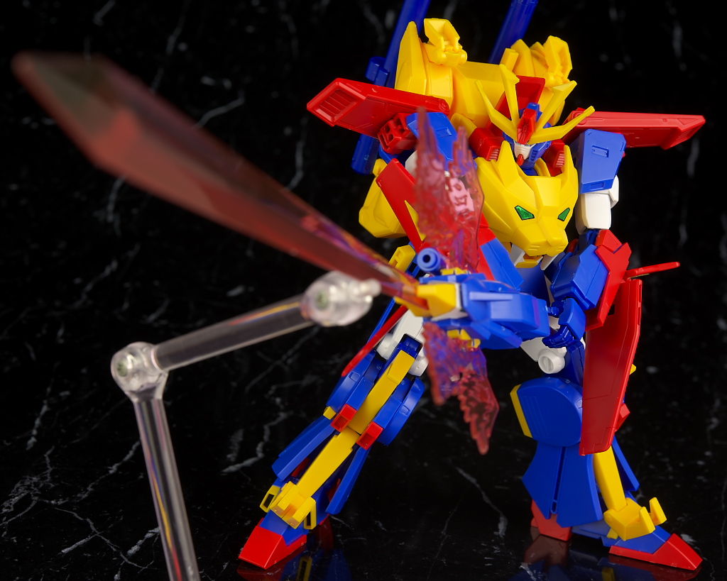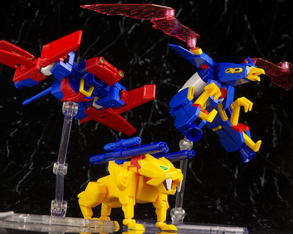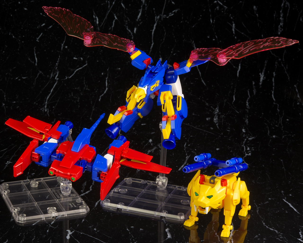 サイドアーマーに差し替え用光の翼パーツを取り付け膝を逆関節にしたら鳥型の飛行メカのソラトライオン完成。