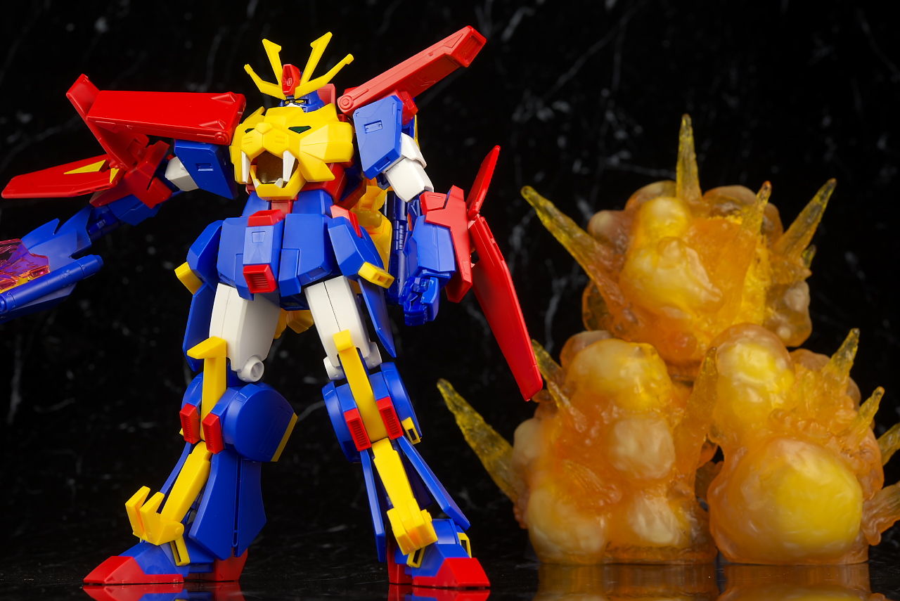 ヒーロー然とした爆発バックで終わり。以上、HGBF ガンダムトライオン3のレビューでした。