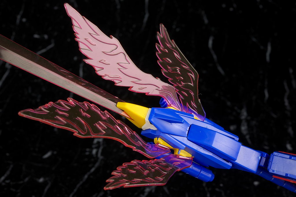 裏側。光の翼はクリアパーツで再現。スタービルドのプラフスキーウイングの流用で基部や中央が可動。