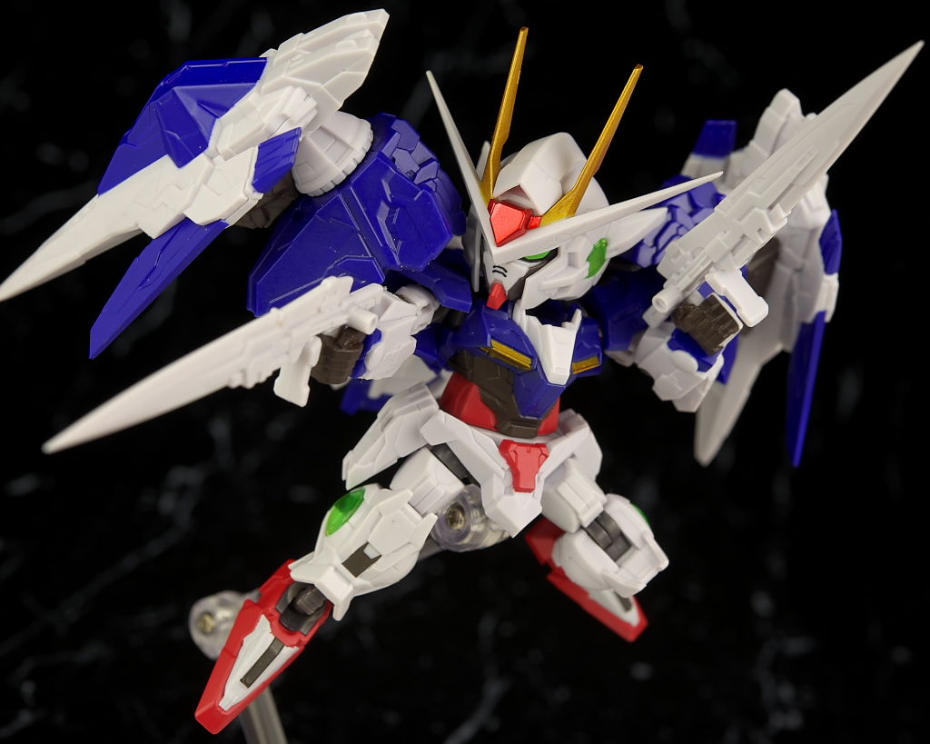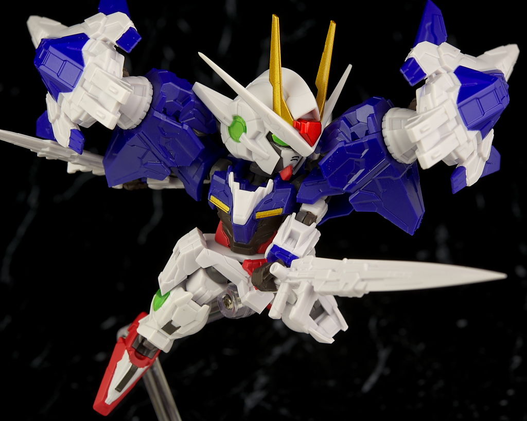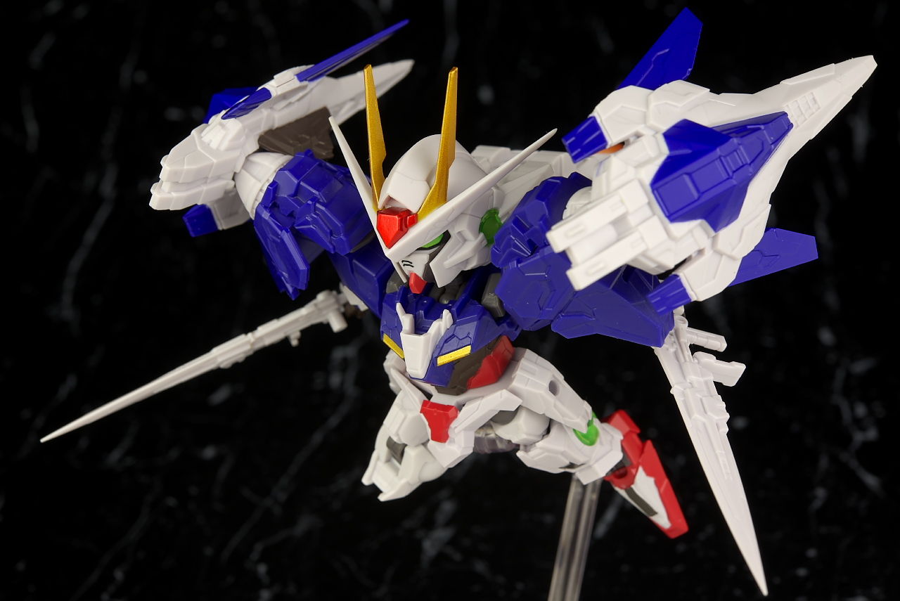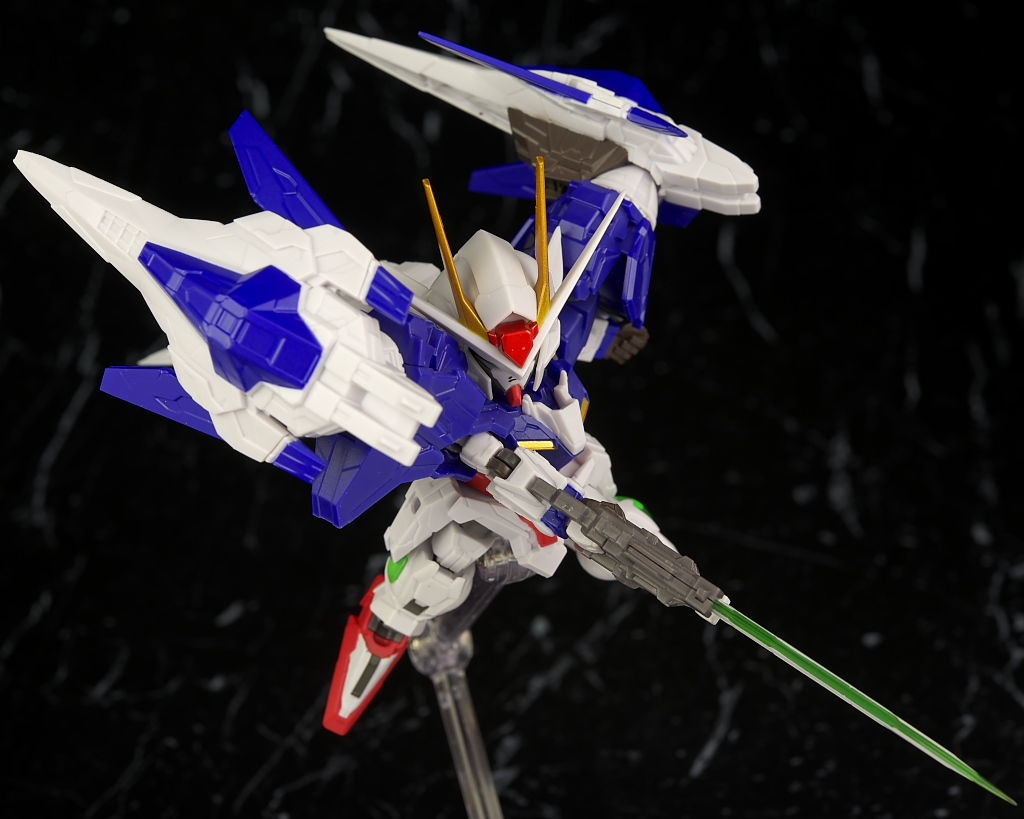 可動も動きによっては多少ドライブユニットと干渉することはあるものの特別気になるほどではなく概ねいつも通り良好で、今回は値段は上がった代わりにちゃんと完全なダブルオーライザーとして商品化されてるのでオプションの不足感もなかったです。