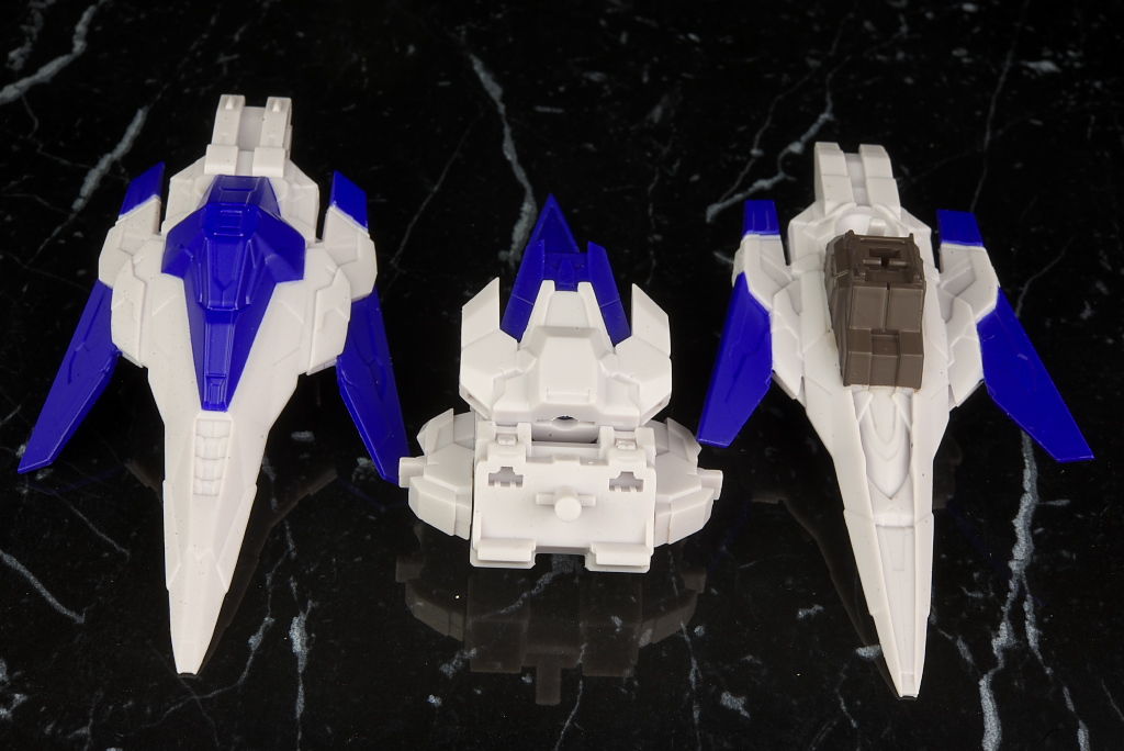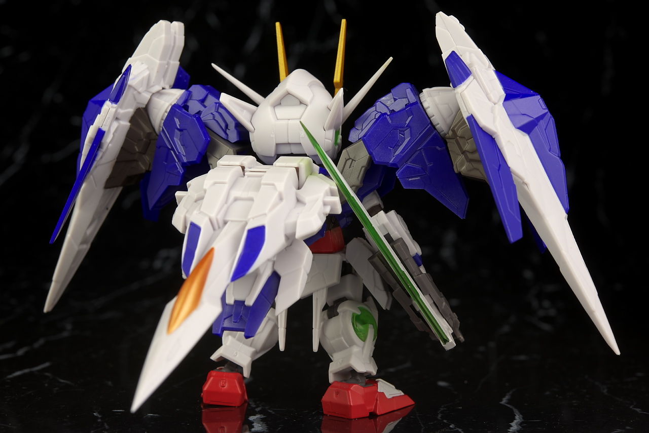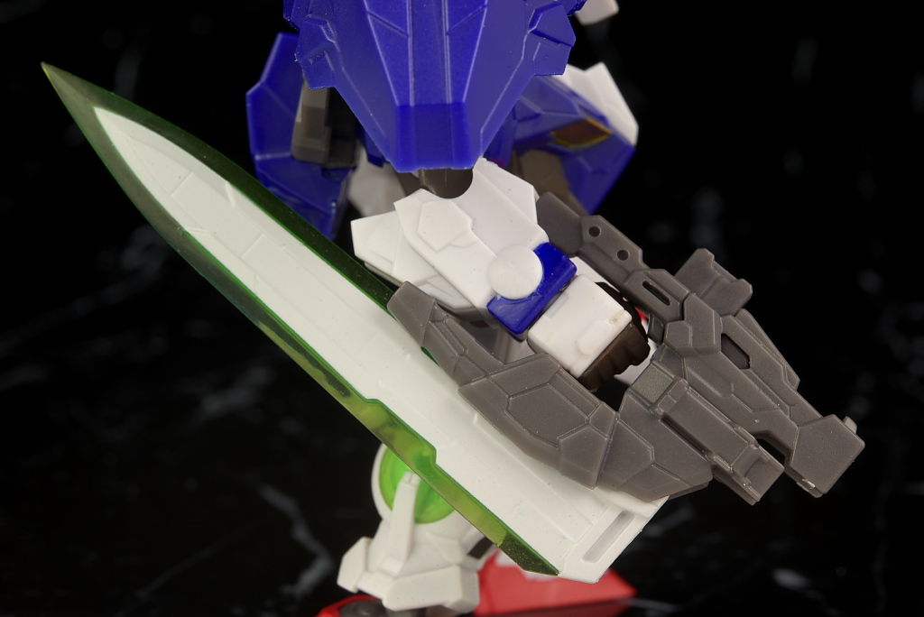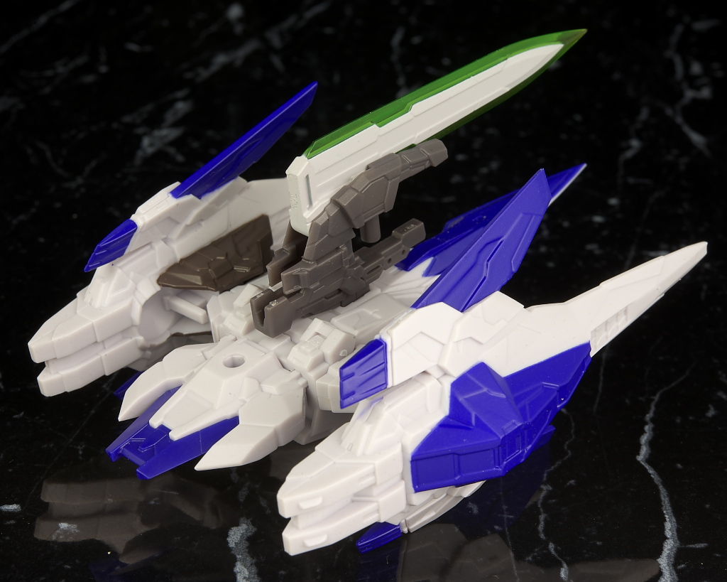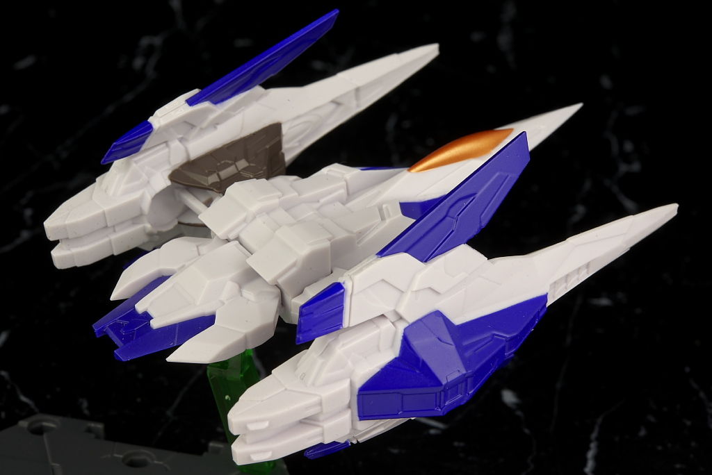 続いてダブルオーへの合体。プラモデルや他の玩具のような本体の折り畳みギミックはなく付け替えで合体形態に。