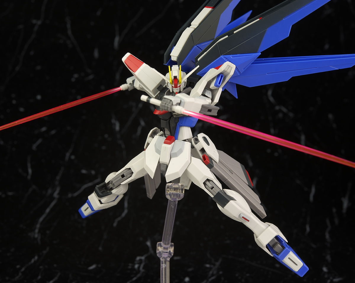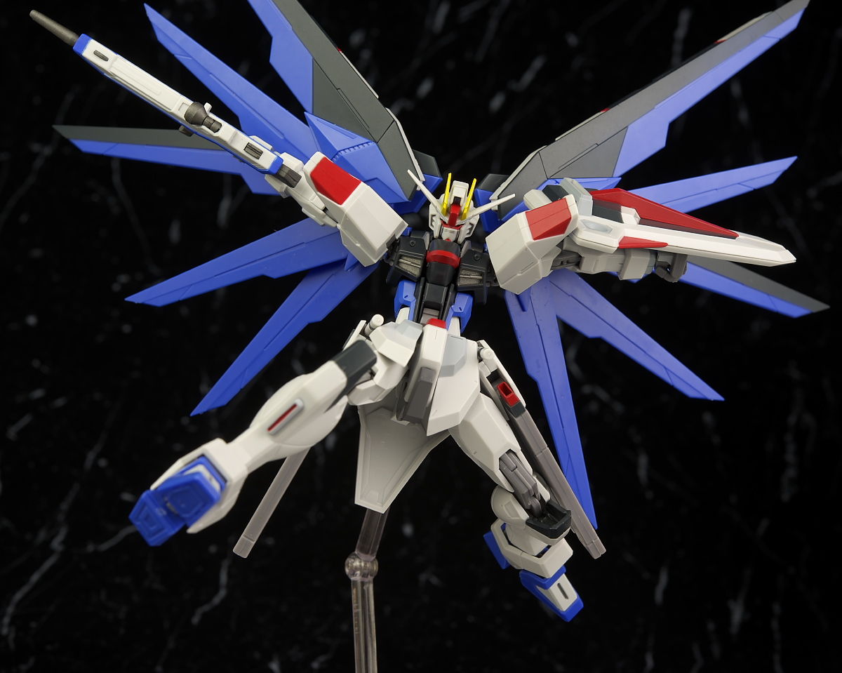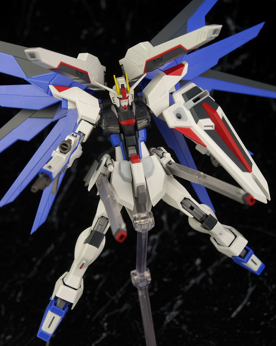 サイズがこれまでのSEED系と大きく違うのと頭部に癖があるのでここらをどう見るかでかなり評価が分かれそうですがプロポーションなどはアニメのイメージに沿ったアレンジが加えられてて独自の魅力があり全体の質感なども良く単体のフリーダムの立体物として見るとかなり格好良く仕上がってました。
