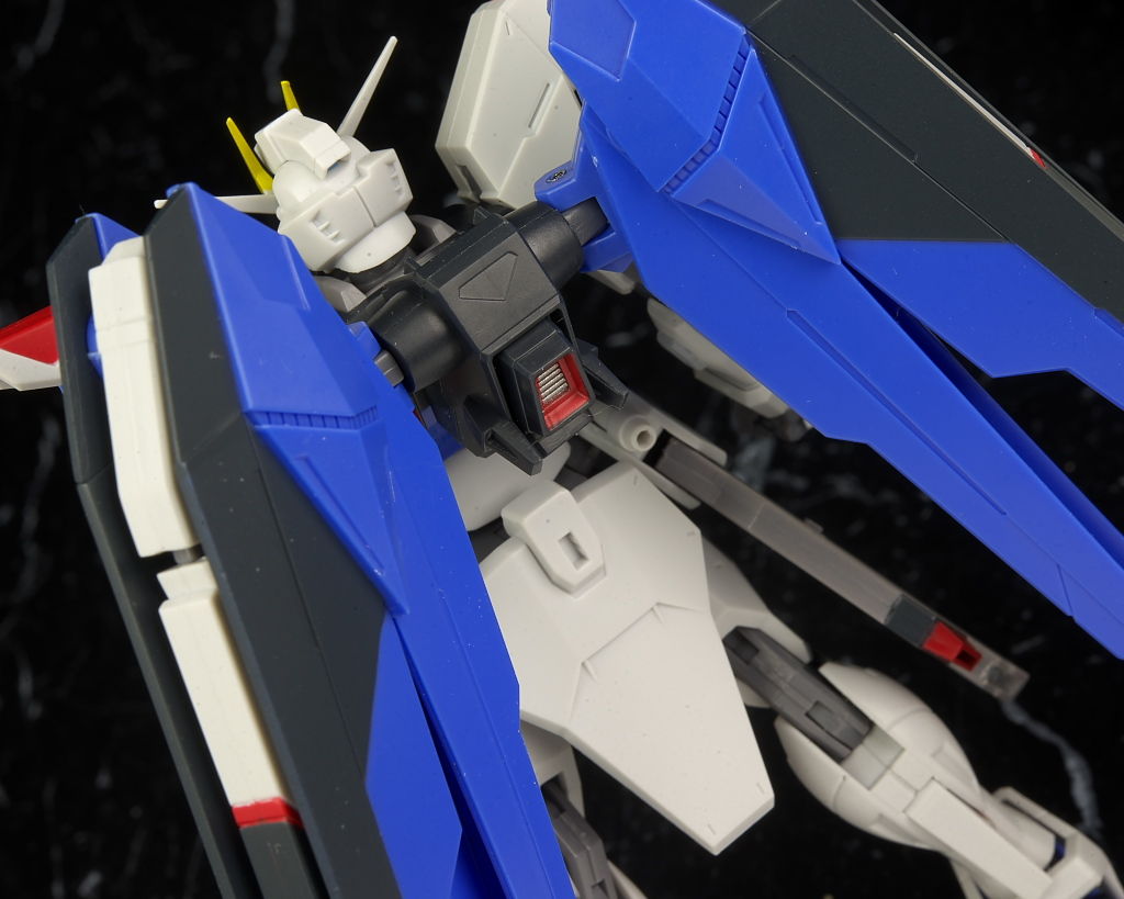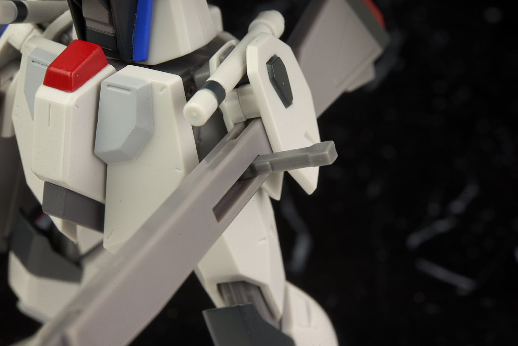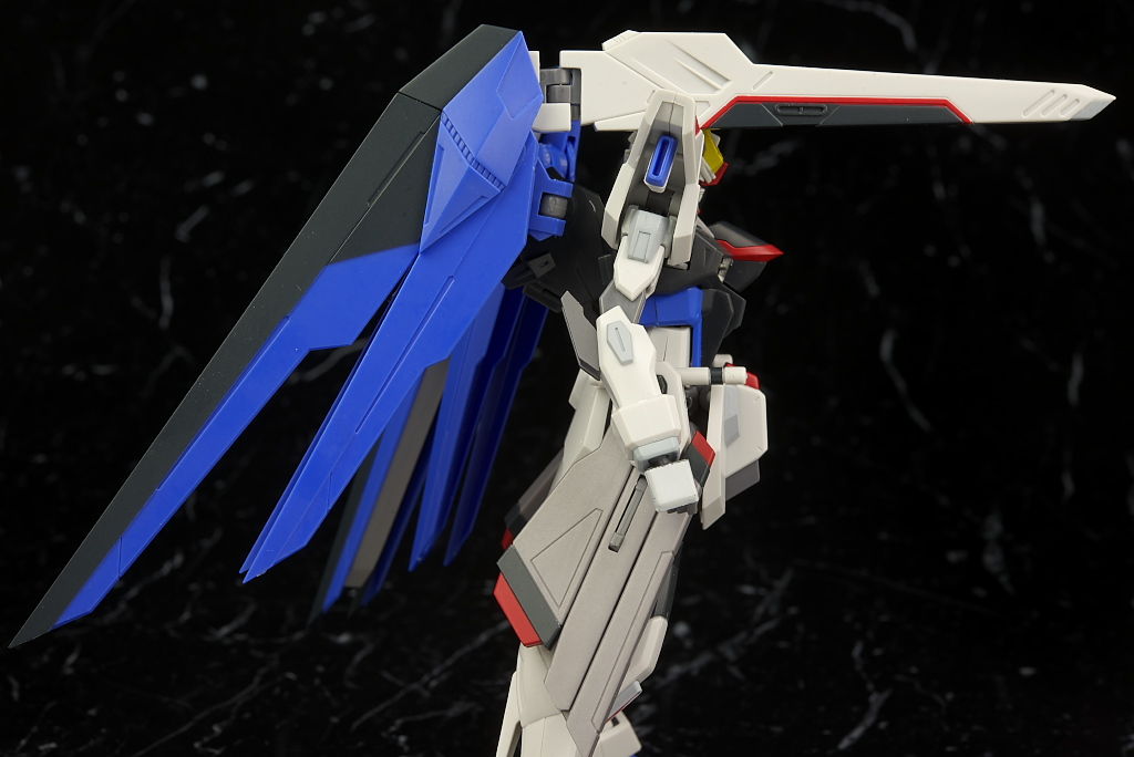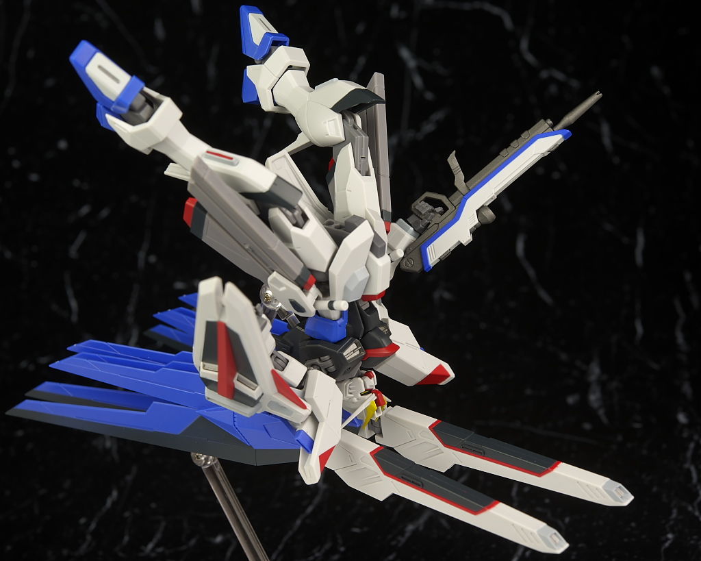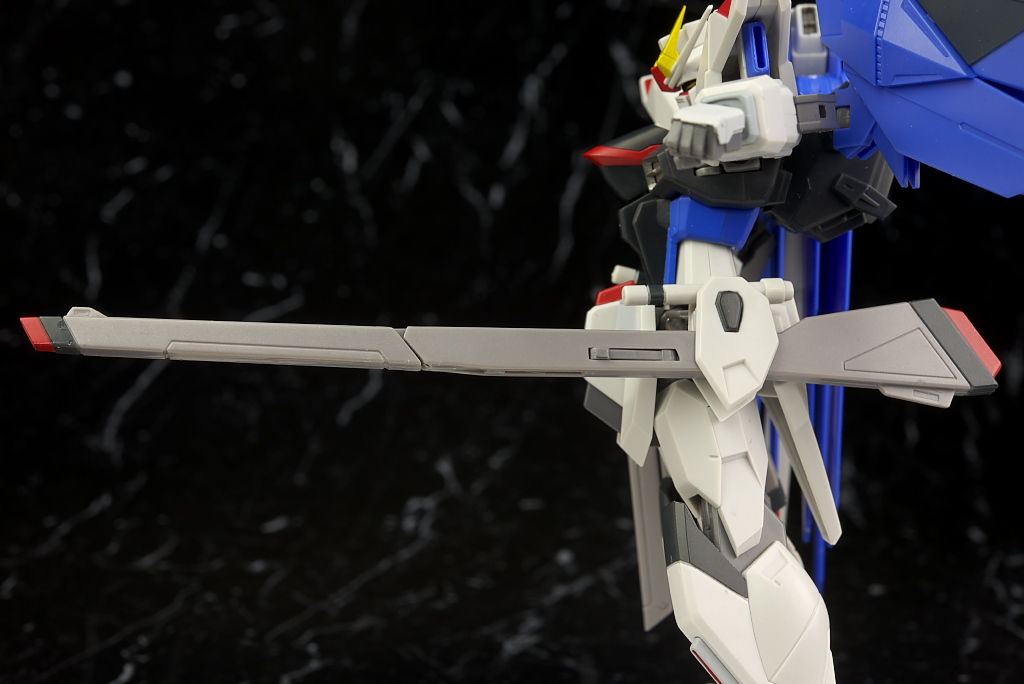 可動はSEED系は特に力を入れてるだけあり腰のスイング幅も広く肘や膝も深く可動。リアアーマーもBJ可動。