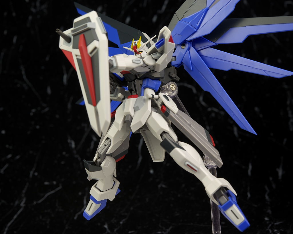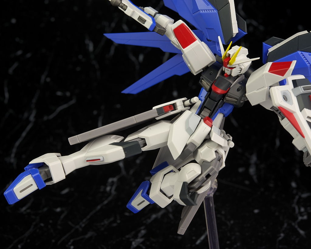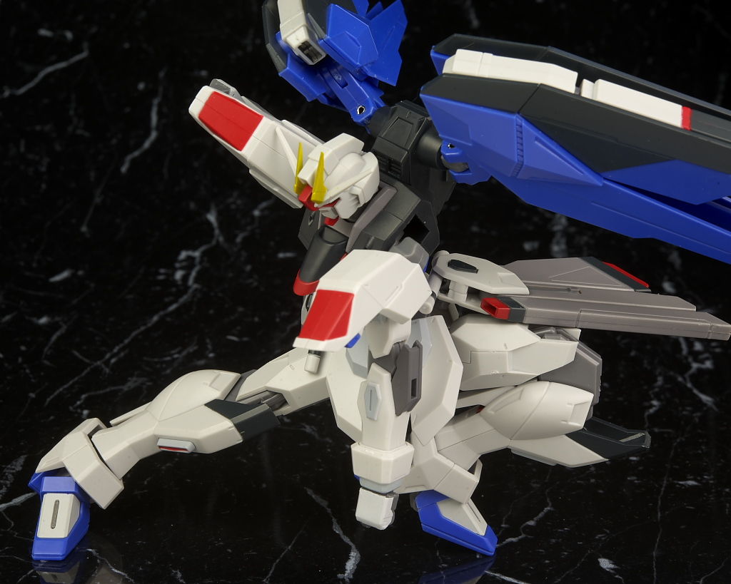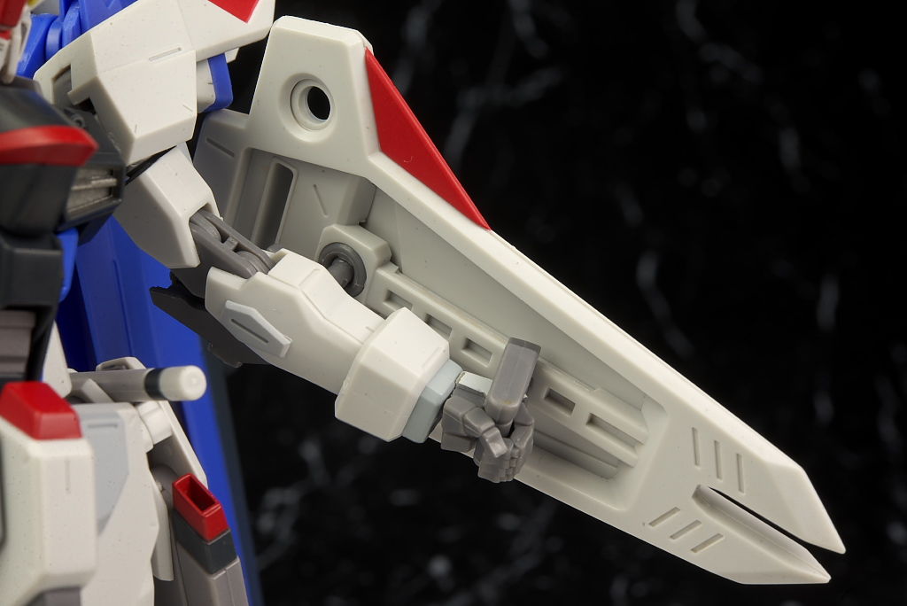 可動はSEED系は特に力を入れてるだけあり腰のスイング幅も広く肘や膝も深く可動。リアアーマーもBJ可動。