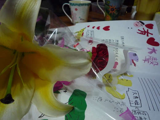 回 家,帶媽媽到陽明山喝咖啡,晚上拿出偷偷準備好的蛋糕,自製的卡片,準備深夜12點和弟弟一起叫醒媽媽慶祝母親節。結果,雖然面臨基測壓力頗大的弟弟不合作,擺了臭臉,而媽媽也因貪看好書而夜深未睡,但你精心準備的母親節活動,裏頭的所有心境,我收到了。