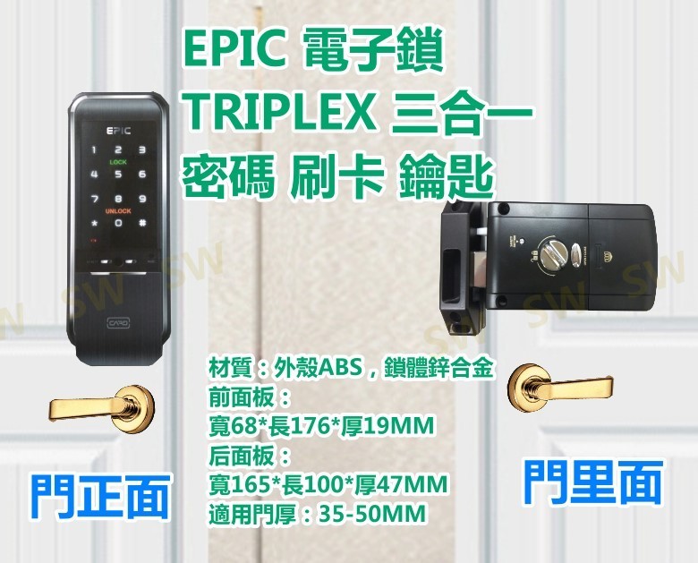 EPIC TRIPLEX三合一 觸控式密碼鎖 密碼+卡片/悠悠遊卡+鑰匙 感應鎖 智能鎖 輔助鎖 門