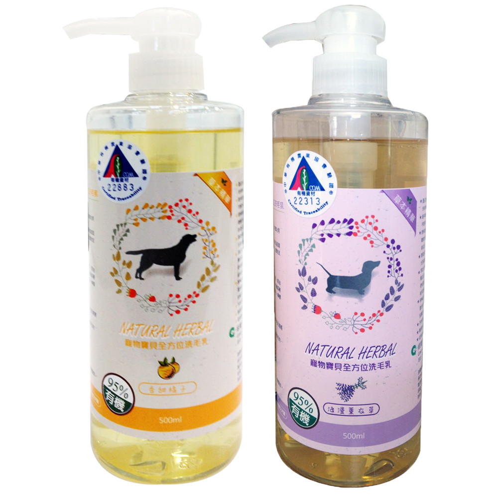 商品內容:寵物寶貝精油SPA洗毛乳(橘子)短毛犬500ml+(薰衣草)短毛犬500ml