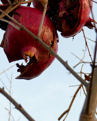 沒有人知道是哪時發生的事,石榴樹自顧自地結出了許多紅艷艷果子;等鎮上的人們都從外地度假回來──順便也帶回來遠處海的鹹腥味道及許多旅程上發生的故事──方才注意到樹上的石榴都已長得像男人拳頭一般的大小。石榴纍纍生著,石榴樹就像個大腹便便的婦人,顯露出成熟的風韻。