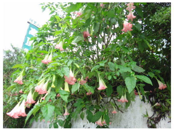 美麗的粉紅曼陀羅, 這也是全株有毒的植物. 花朵清芬 然而有強烈神經毒 致人迷幻迷幻. 華陀和李時珍取用來做手術前的麻沸散, 台灣之前嚴禁安非他命時, 園區內被宵小砍去很多曼陀羅株. 借一張阿里山粉紅曼陀羅照片參考.