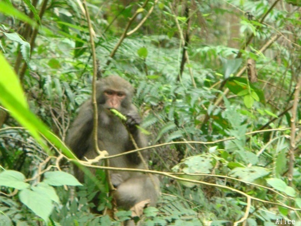靠近天空走廊入口的樹上, 一隻臺灣獼猴 自顧自的啃著嫩芯進食, 不理會我們在旁邊觀看.