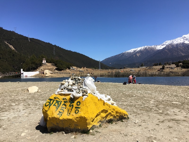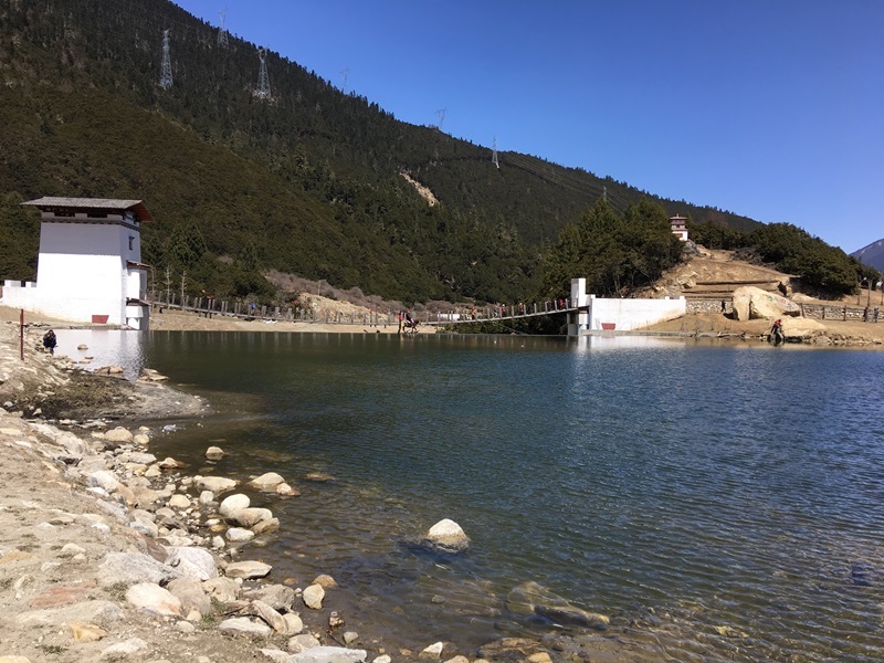 導遊帶我們到有 瞭望塔 繩索橋的札塘魯措。說起來 西藏比我們乾旱,可高山湖泊還真不少。
