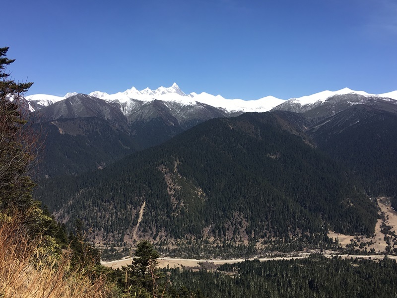 如此的福份 如此的善待,實在太讓人感動了。山峰插天指向藍天 如同尖矛的南迦巴瓦峰。