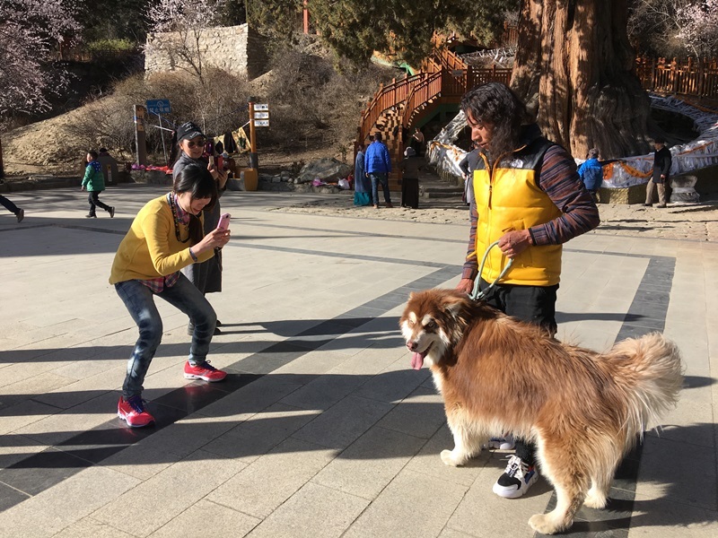廣場上遇見五官立體 貌似康巴族勇士的男子(希特勒認為除了日耳曼民族之外,原為祖上為馬其頓大軍的康巴族是第二優秀的),牽著一隻並不親人的哈士奇。