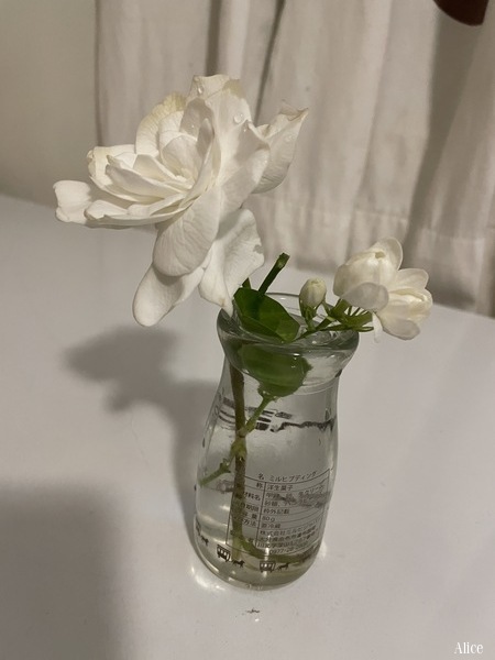 這天氣 實在太熱了 , 有栀子花與 茉, 熱到不行, 只能熬一天, 就要枯萎了 。