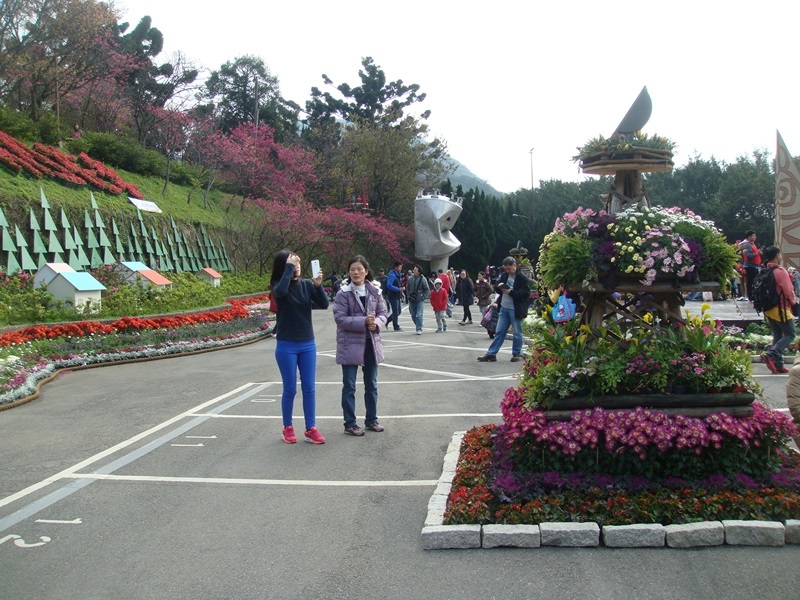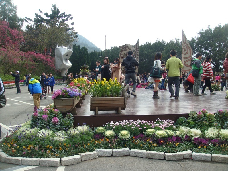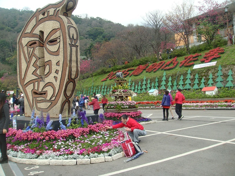 廣場上各色鮮花擺製的美景, 讓人開心想合照。