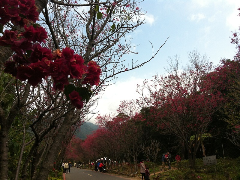 帶著媽媽尋春拍照的孝順女兒, 第一次來,喜孜孜的讚美媽媽與櫻花攝影 。攜手出遊的家人與青少年 健康活動。年節裡不用擠爆塞車, 山郊大道上悠閒的散步賞花, 有花季加班車快速護送遊客, 這是我們在地人 年節裡令人安心的幸福 。