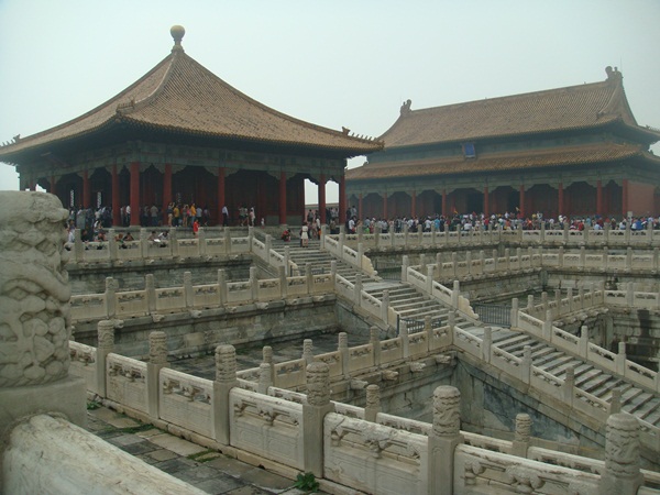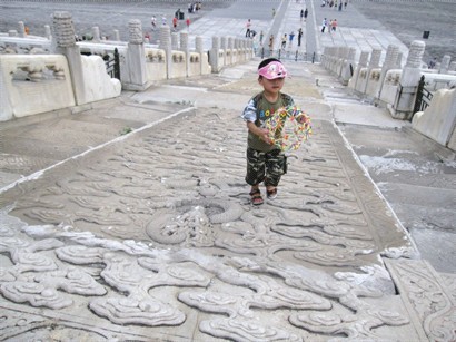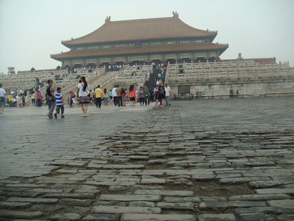 記得第一次看到丹陛 問這是什麼意思 得知是專給皇帝走的 接著又問了儍問題 這樣的石雕 皇帝走在上面不腳痛嗎 聞者回說 皇帝是坐轎子的 兩旁的階梯是給抬轎人走的 所以中間的丹陛是給皇帝的轎子經過 呵呵 原來如此呵 , 有默契. 這麼大的廣場和宮殿,真要上下來回跑 怎麼不替侍臣們捏一把冷汗?