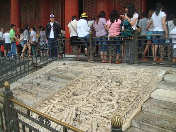 好命的皇帝出門都嘛不用沾地, 那些雕刻著雲朵與巨龍的石陛, 能看不能用, 四處宣示著皇帝的天威與專屬通道哪.