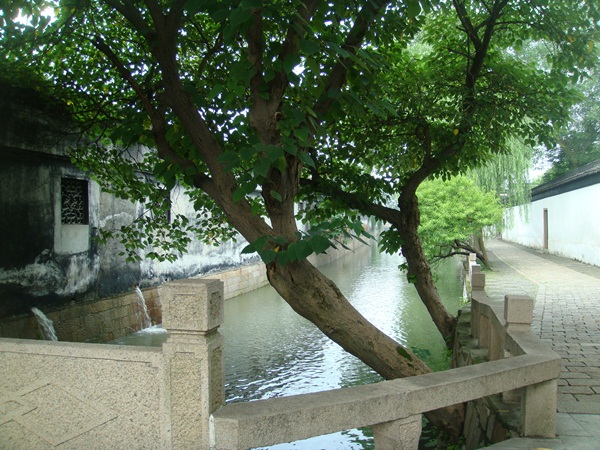 耦園後面也面河, 就聽著導遊手拿大聲公, 要搭船遊客下船. 河邊的道路往前走, 過個小石橋就是蘇州動物園前.原來偶園還是個三面臨水的園林哪.