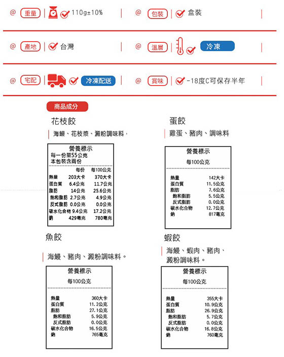 口味可選:蛋餃/魚餃/蝦餃/花枝餃