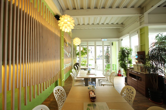 淡雅綠與純白為主題的裝潢,打造清心氛圍,懸掛各種餐點的照片,不僅色彩繽紛,更是在誘惑每個客人的食慾。