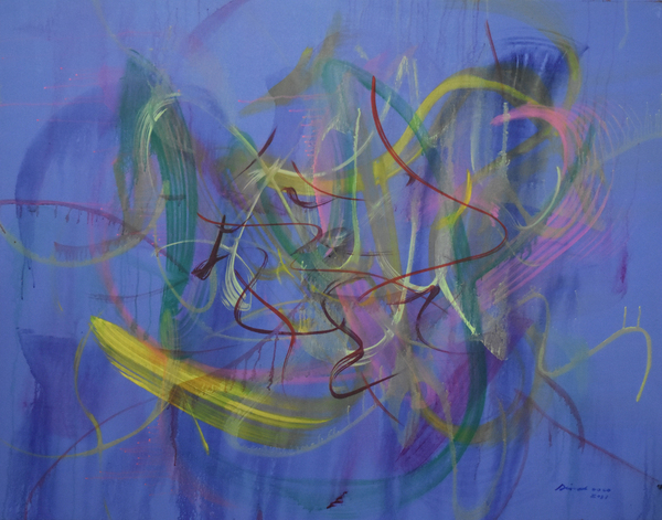 台灣畫家鄧明墩抽象油畫作品_水墨行草