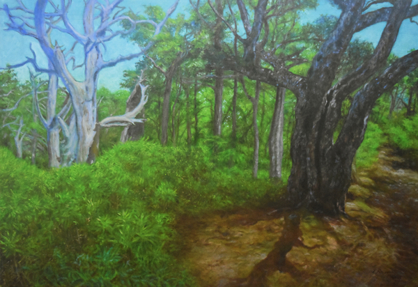 2022年開始以寫實風格畫台灣高山樹林並訂名為(山之魂 樹之靈)系列,紀錄推崇台灣雄偉壯麗的山水,抽象與寫實繪畫表現並進!