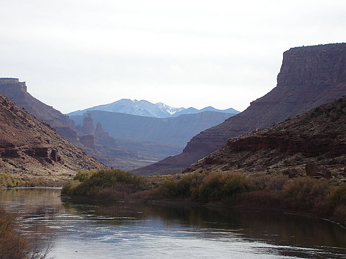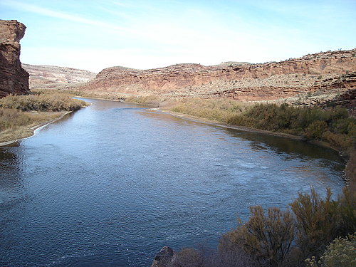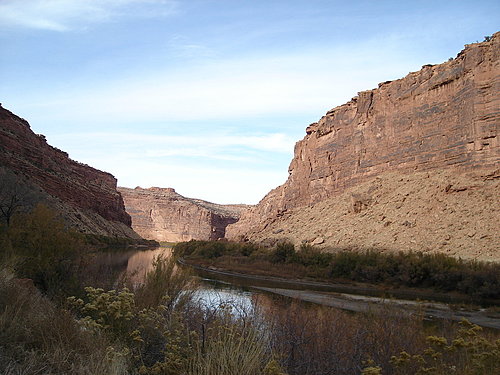 進入猶他州要轉進MOAB鎮又有兩條路可以選擇,因為比原定計畫更早進入州界,所以我們選擇了猶他州128號公路做為旅遊的路徑,其原因僅僅只是因為它其中一段是沿著科羅拉多河谷而舖設的路,心想應該會很美吧!