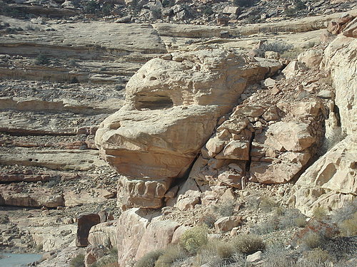 在下坡路段我們發現一個突出的岩石,長得好像豹貓的頭喔!為了捕捉它的鏡頭,我們放更慢的速度下坡前進。