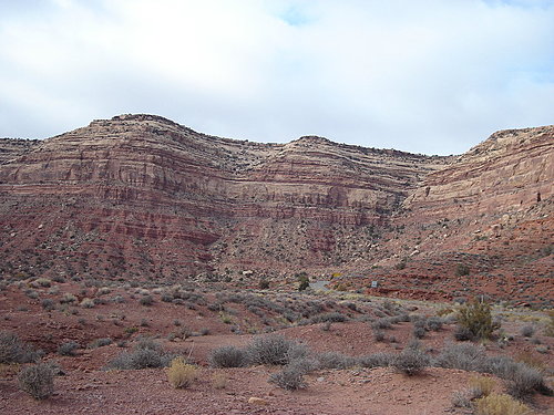 沿著猶他州261號公路,地圖上箭頭指著一個地方寫著〝 3 miles graded gravel switchbacks 〞,聽遊客中心的服務人員說這個點的風景相當漂亮,值得我們走這麼一趟。其實這也是我們從〝天然石橋Natural Bridges國家保護區〞前往〝紀念碑谷(豐碑谷)Monument Valley保護區〞的必經之路。