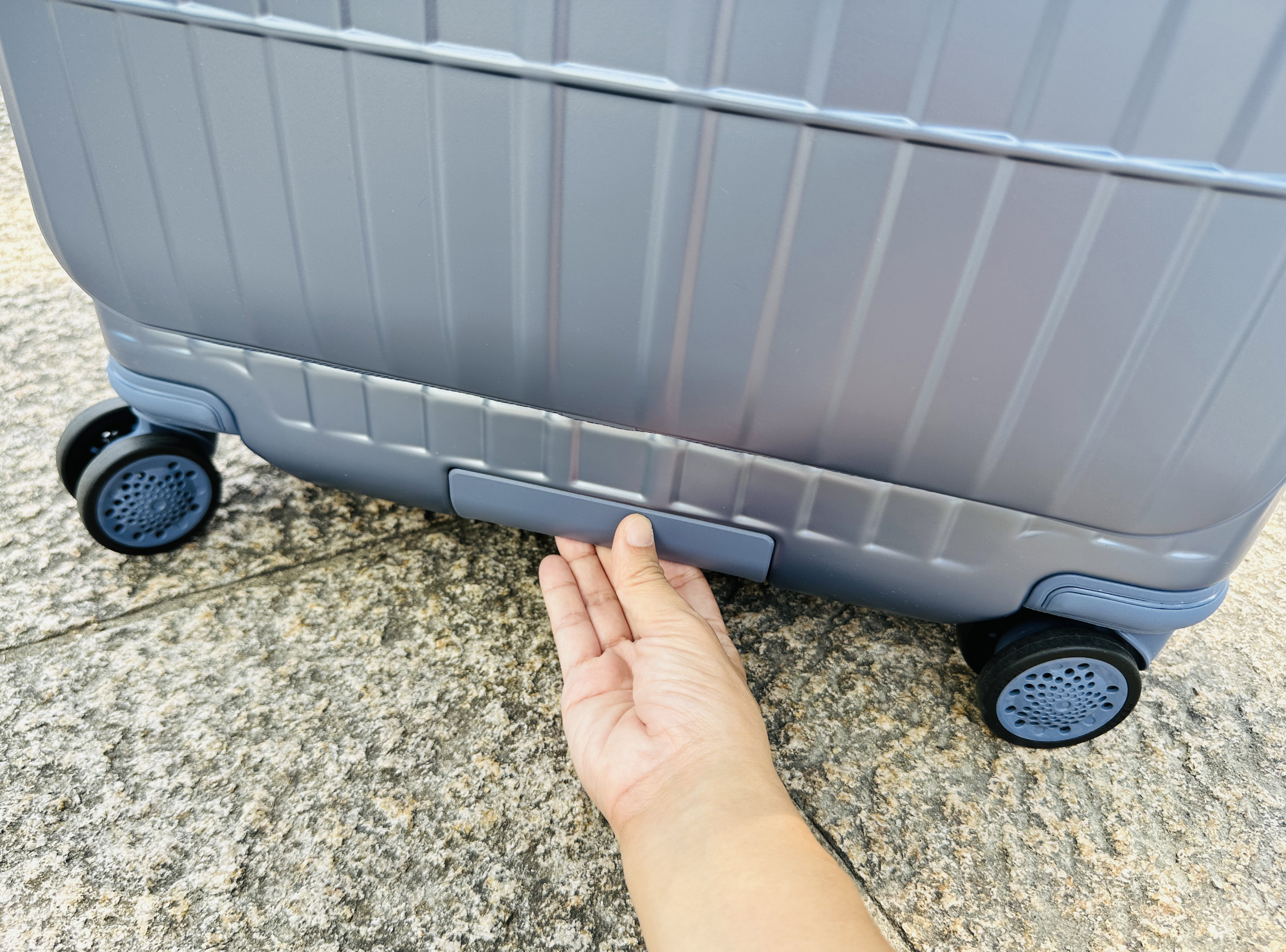這個貼心的煞車設計,對搭火車或高鐵的旅人來說特別實用,行李箱放在行李架旁也不用擔心滑走