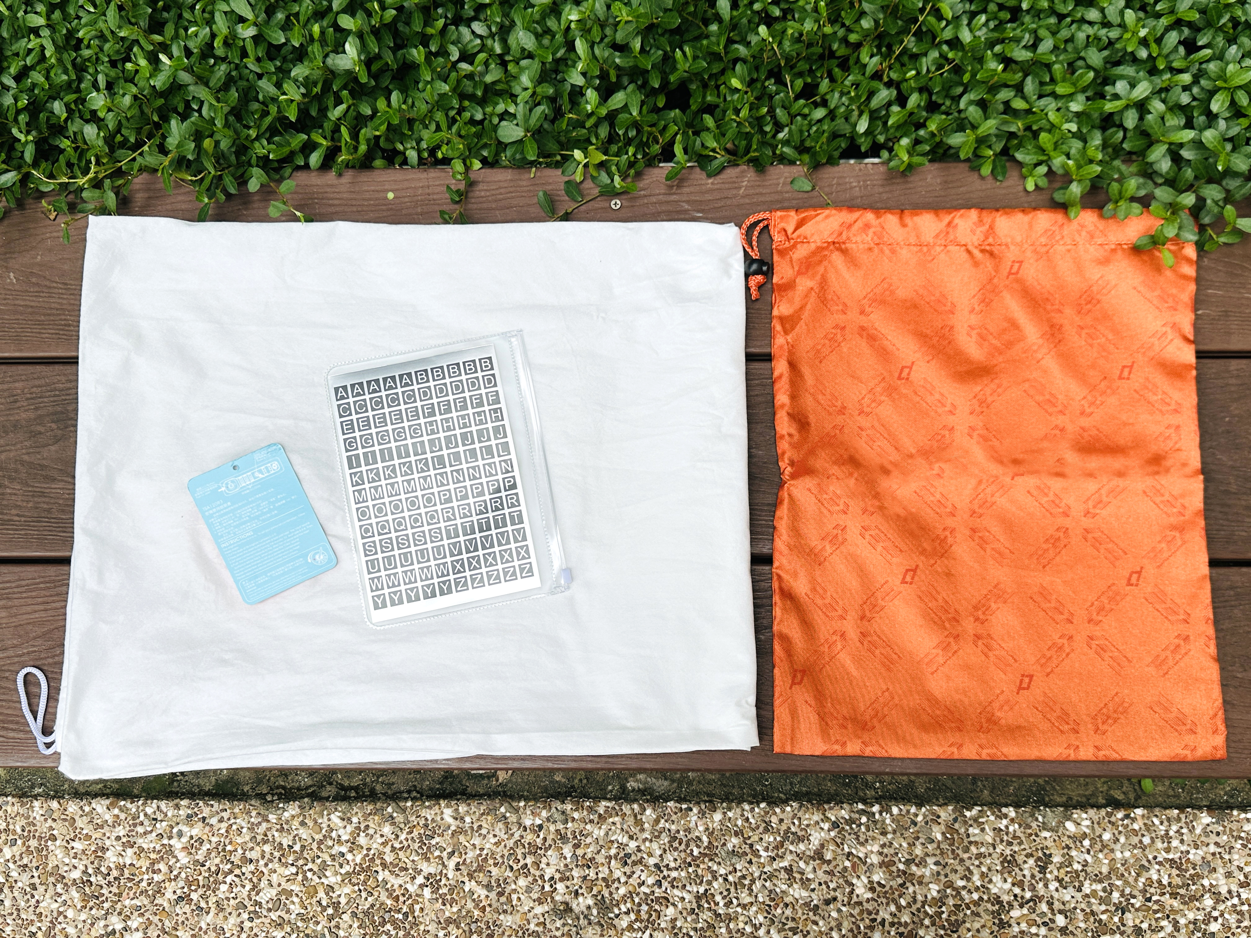 配件包含行李箱防塵袋、字母貼,以及精美整理袋,讓收納更整齊,也方便辨識行李
