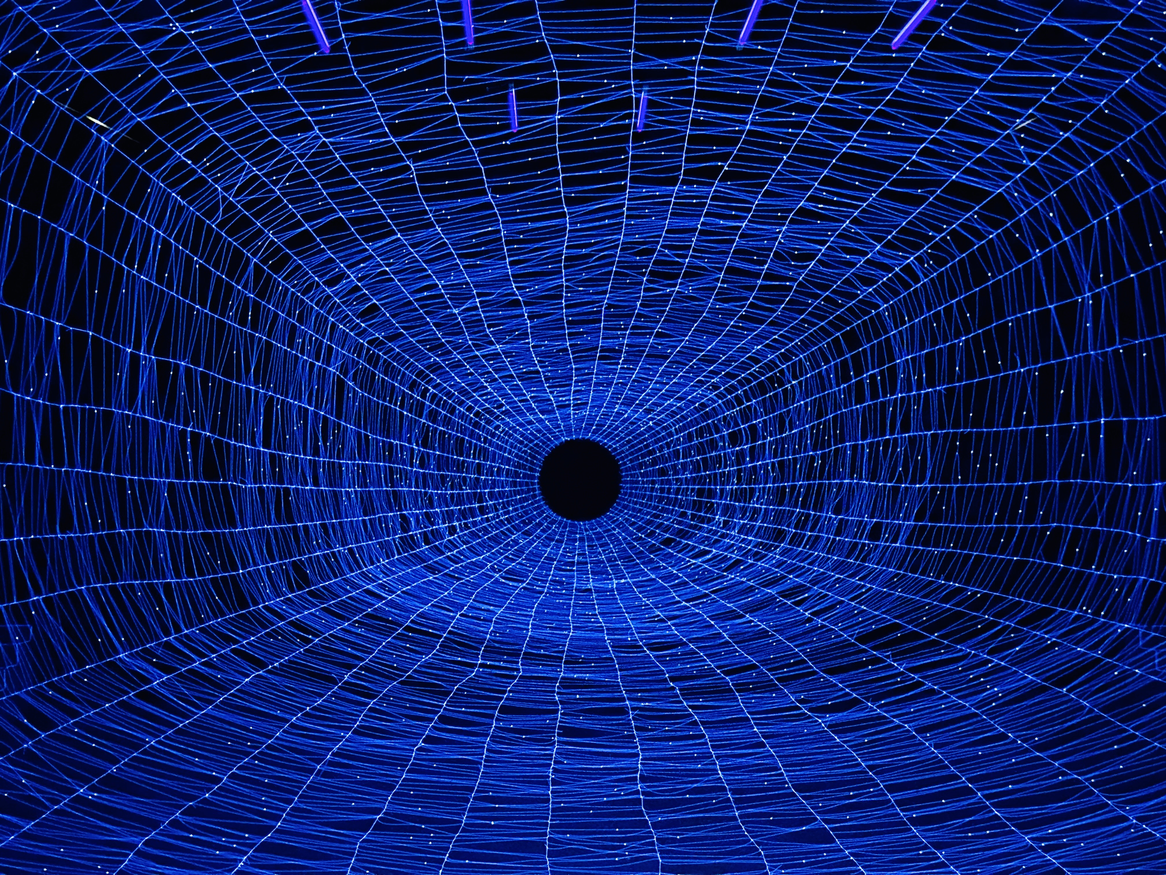 站在作品前,彷彿被一張會呼吸的光網包圍,每一條線都像是生命之間的連結