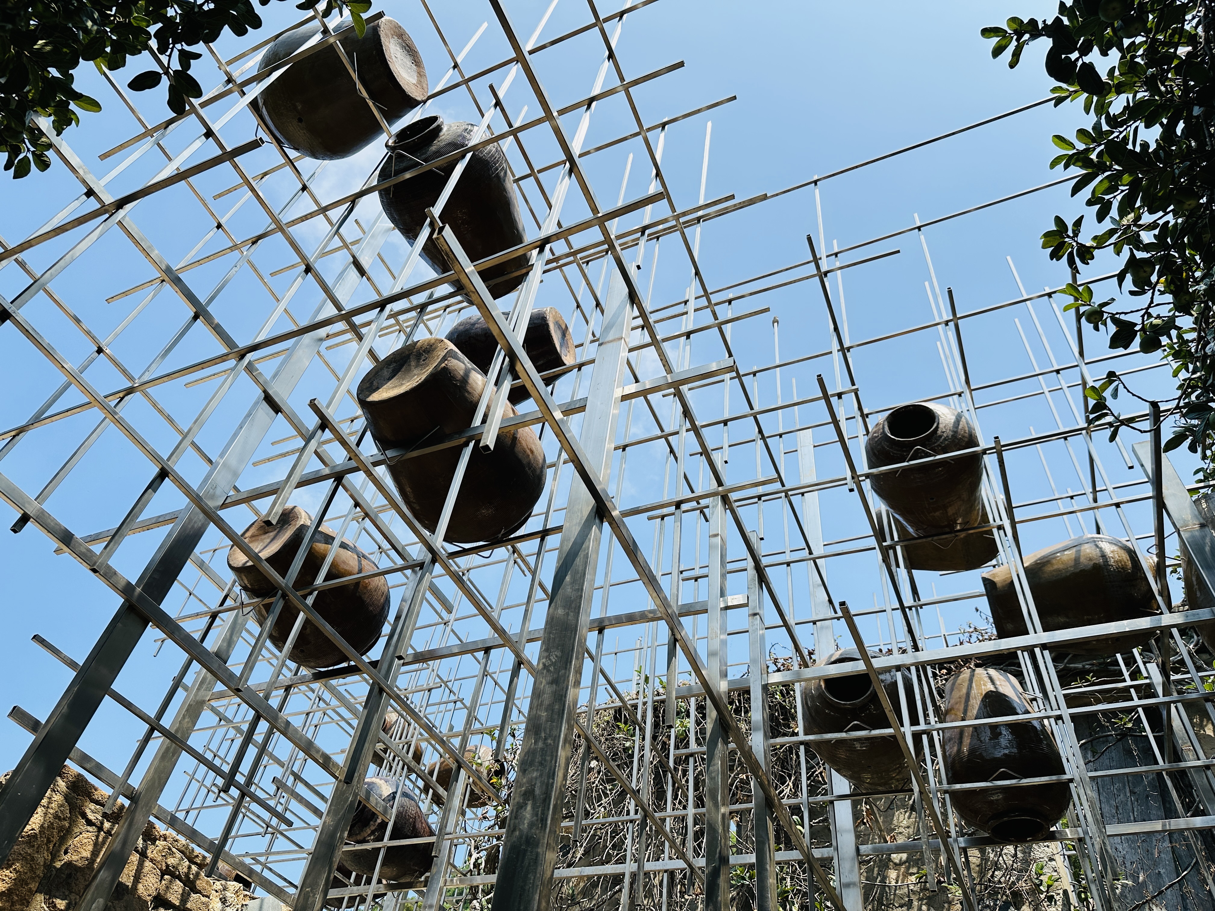 《海量》作品,甕與光影交錯之間,彷彿能聞到酒香、聽見海與飛機的聲音