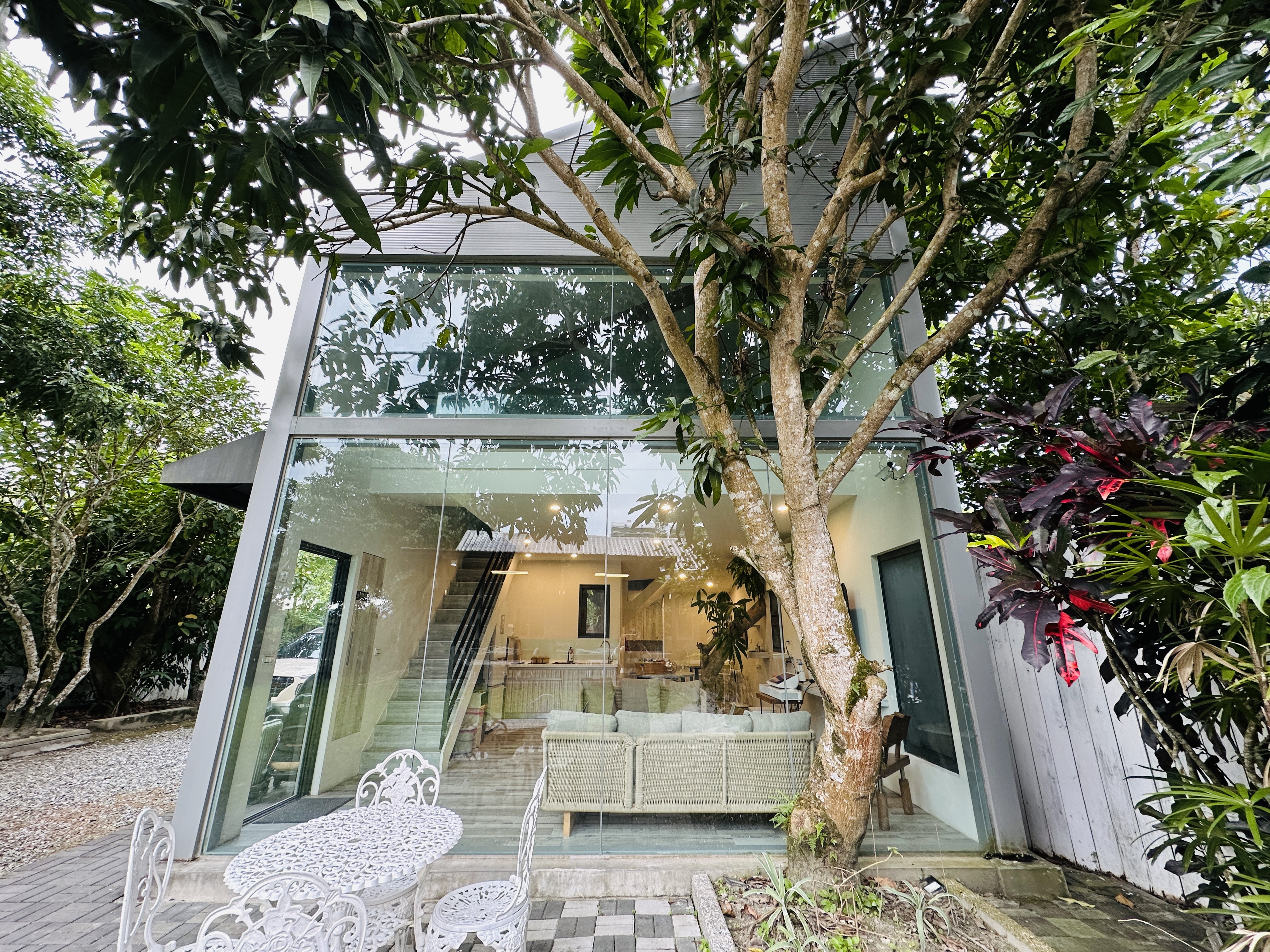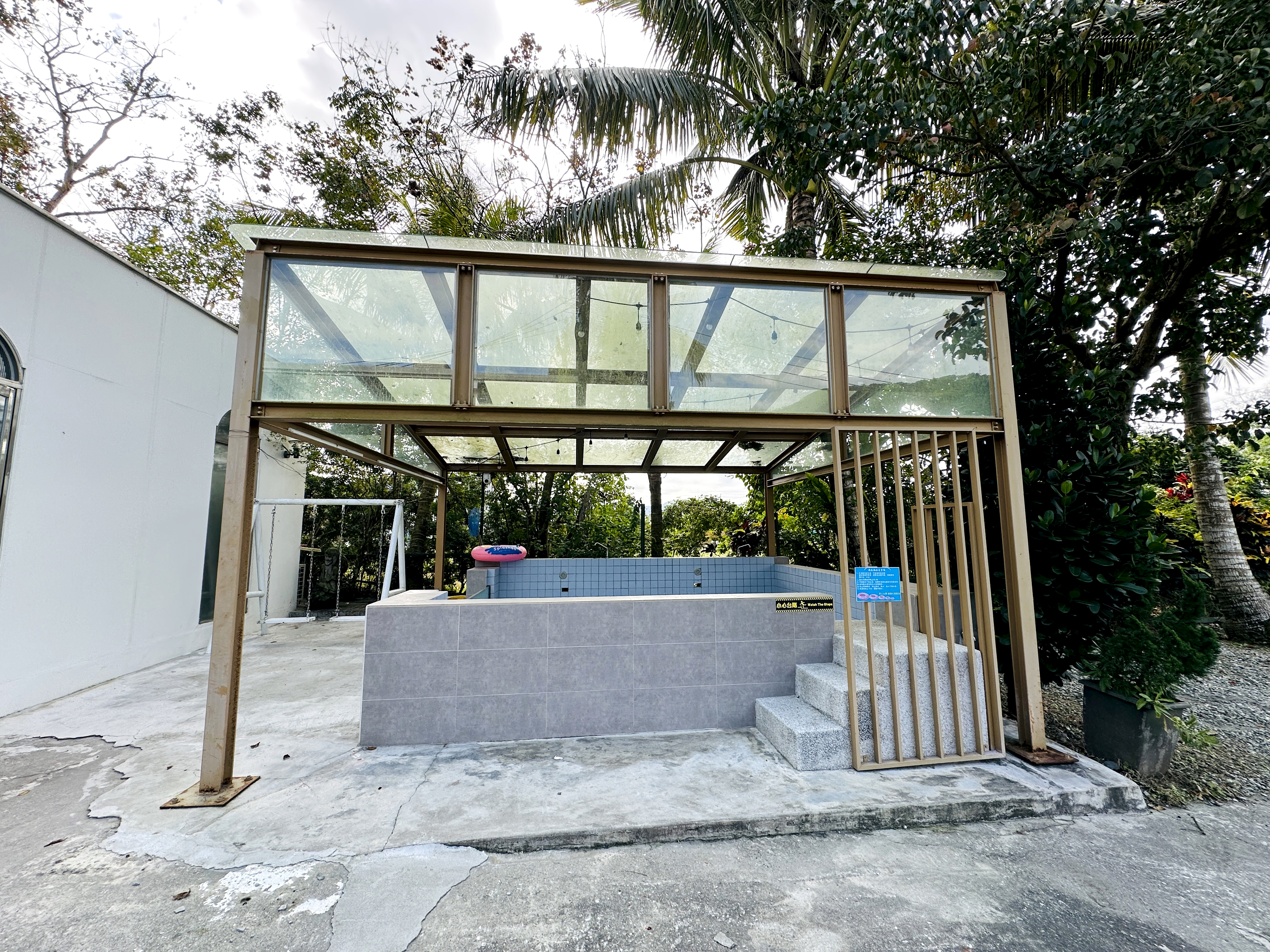 同樣也設有獨立的交誼空間,玻璃屋裡的氛圍很舒服,旁邊有一座戲水池,整體規劃得非常完整。