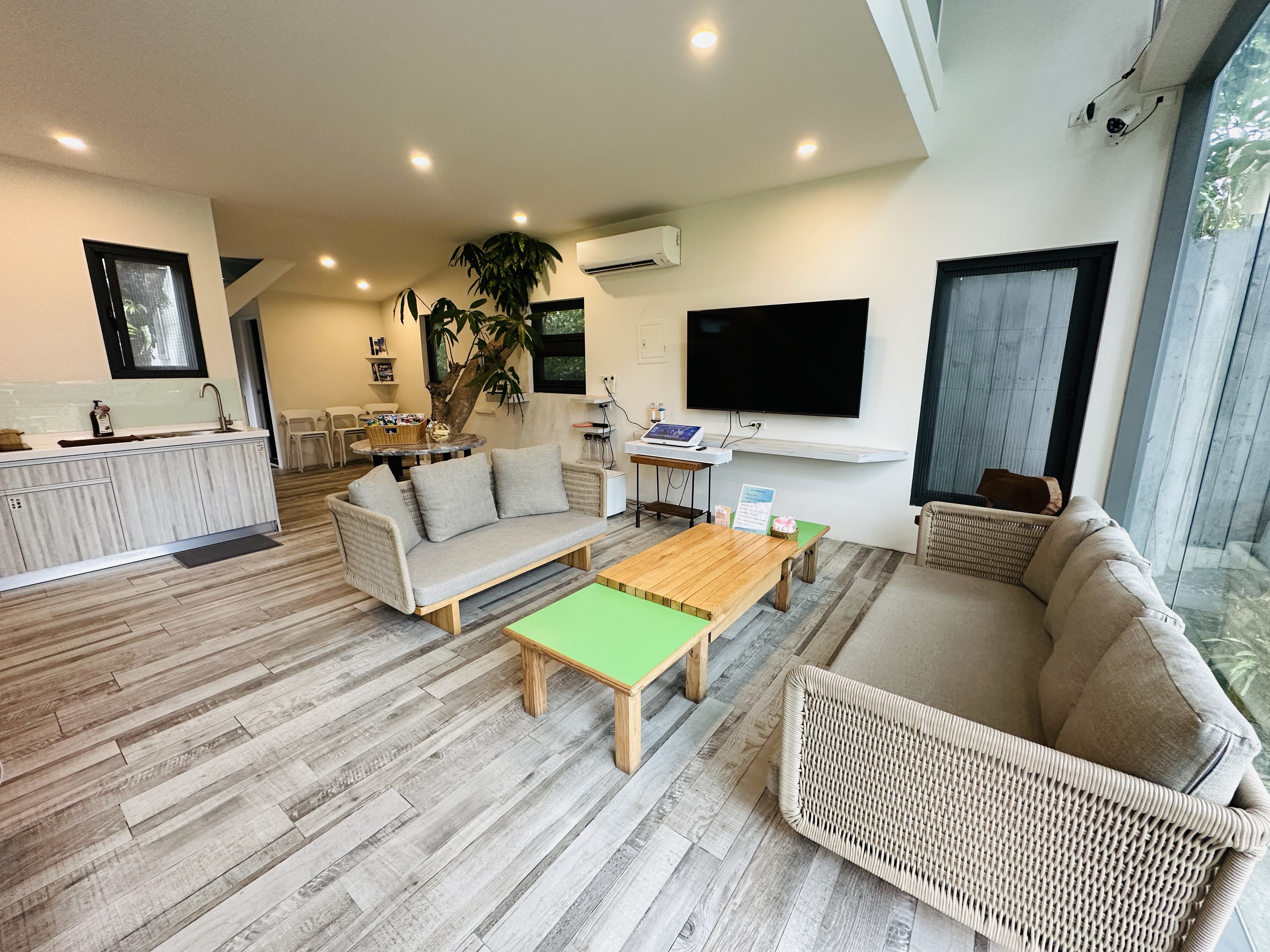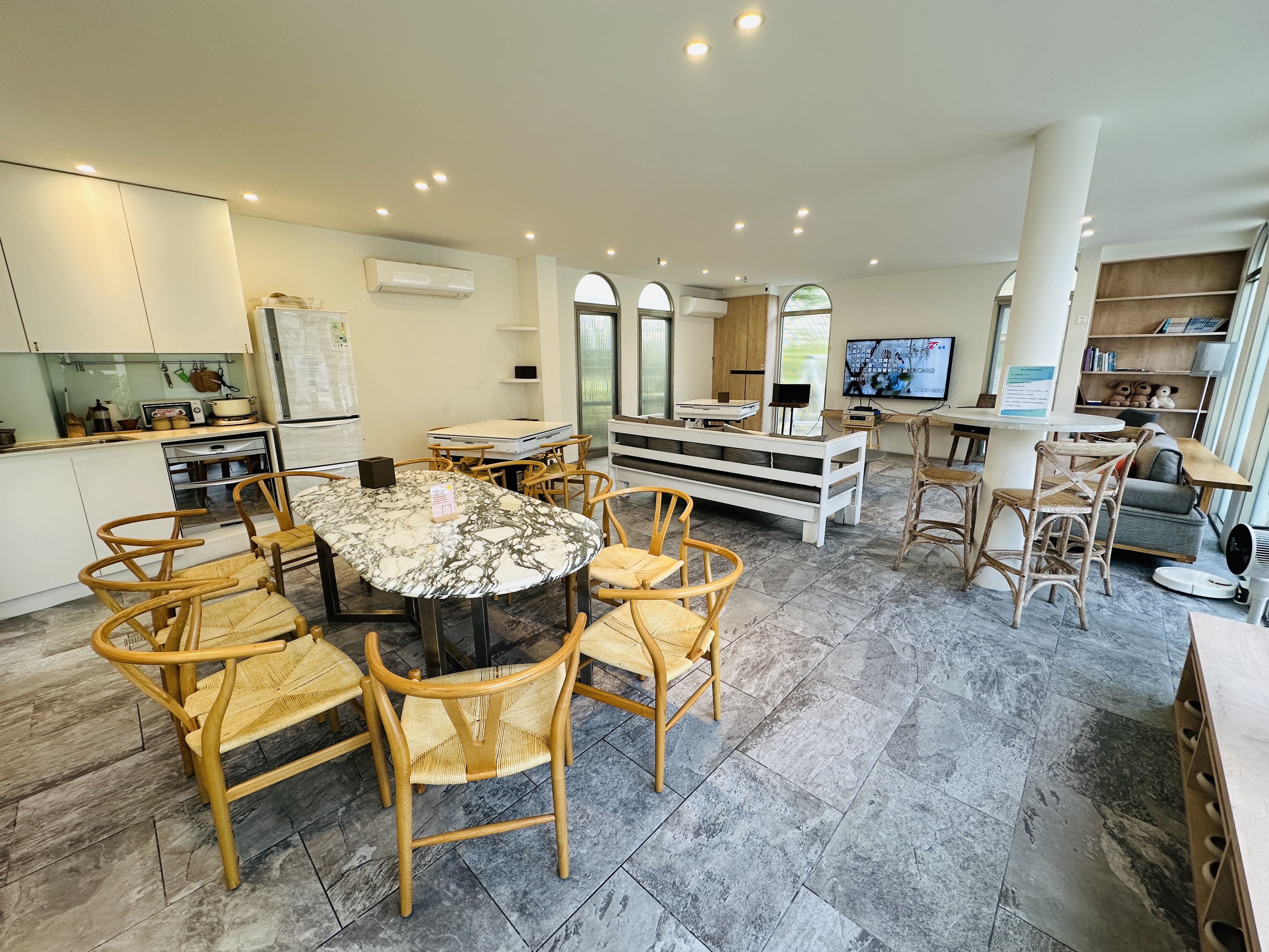樹屋一樓就設有公共廁所,這點對包棟來說真的超重要,大家在客廳聊天、唱歌、玩桌遊的時候,不用特地再跑回房間上廁所。