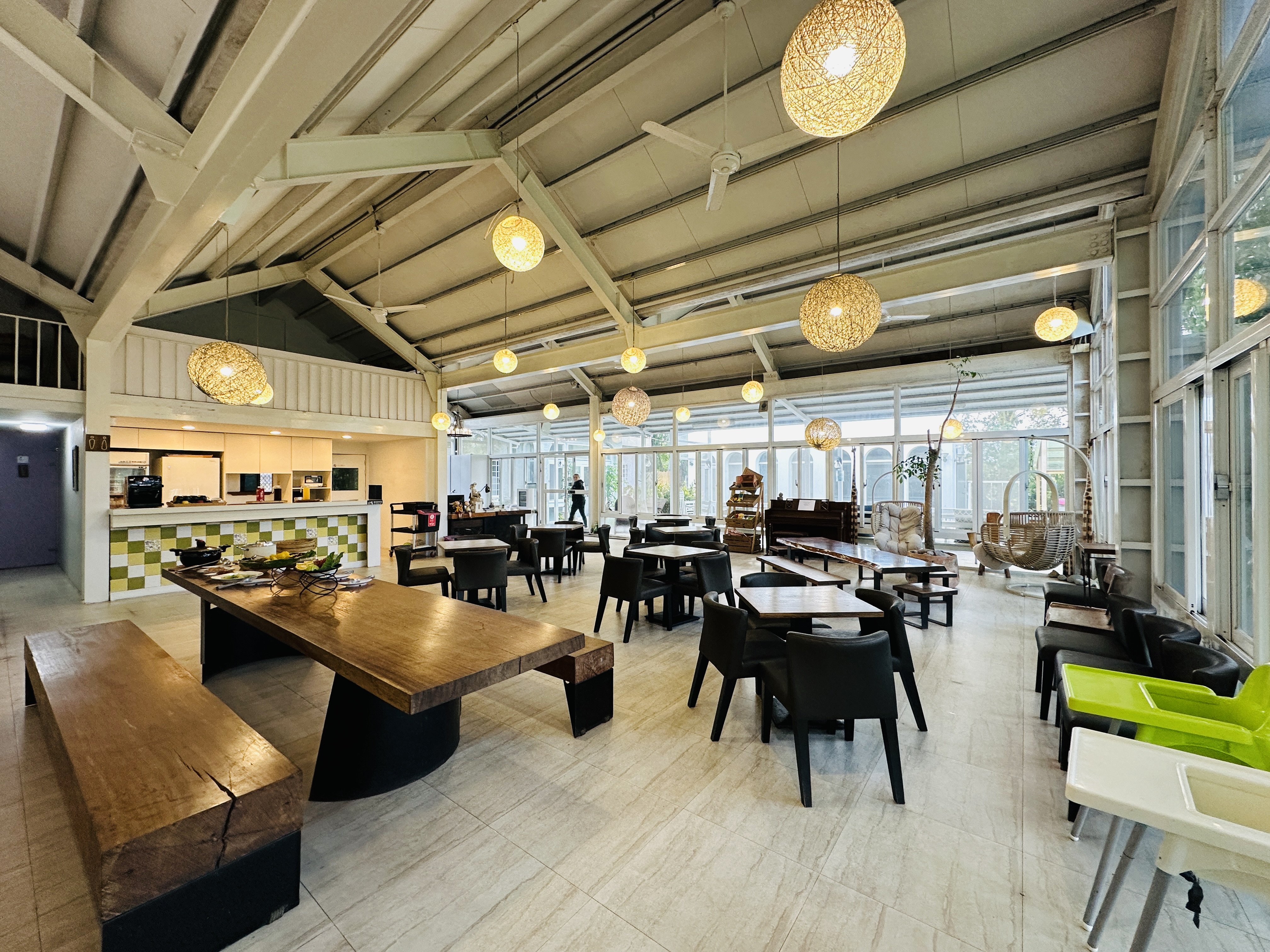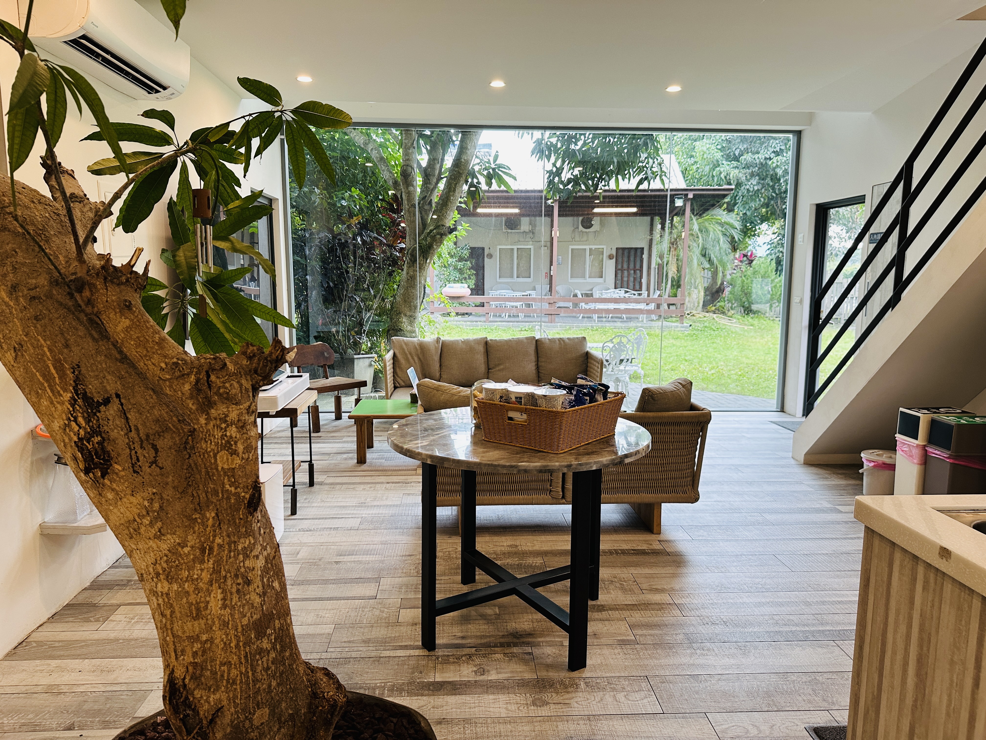 樹屋館的交誼大廳本身就很有記憶點,空間分成上下兩層,大面的落地窗讓整個室內採光非常好,一走進來就是明亮又舒服的感覺。