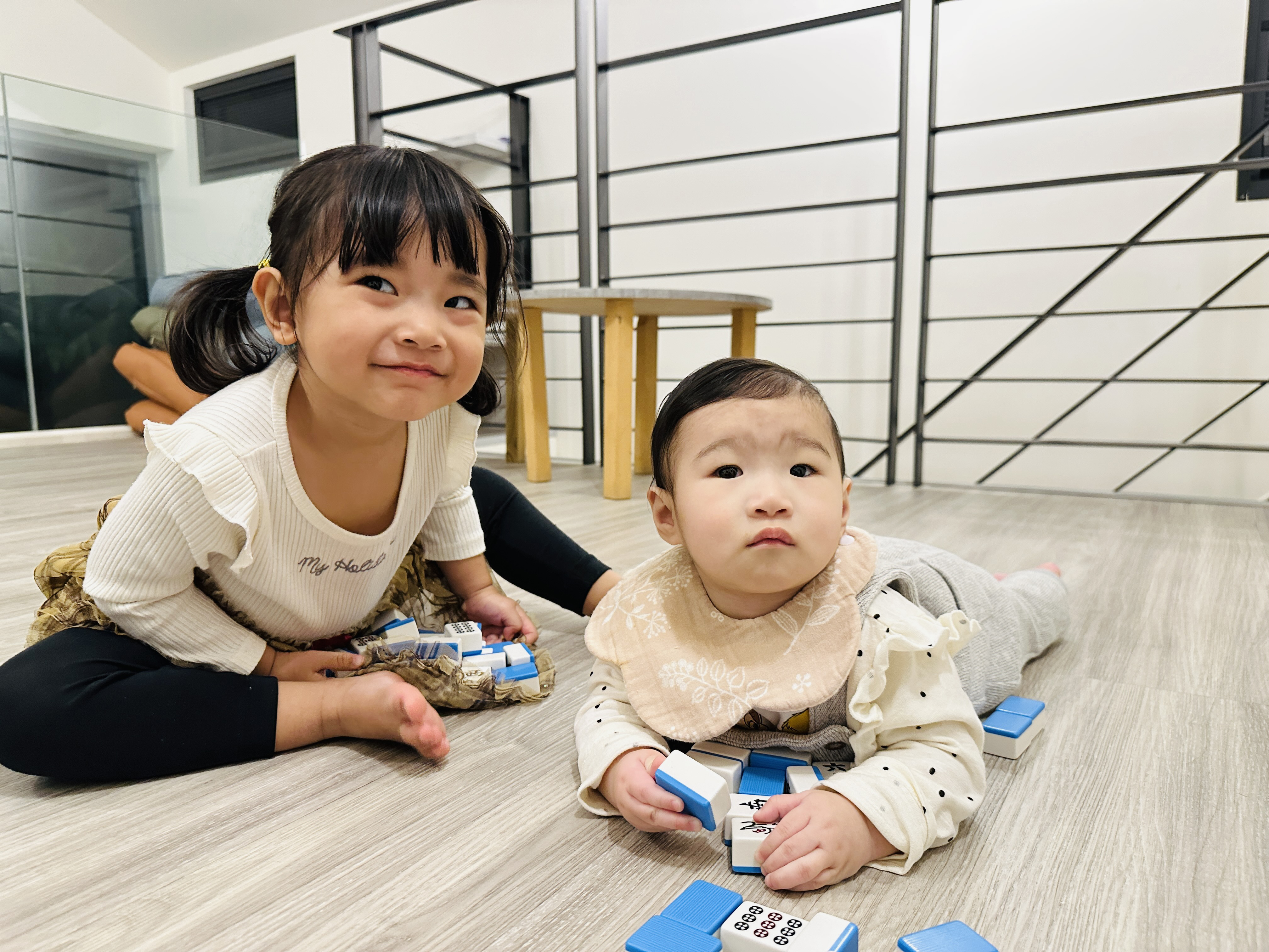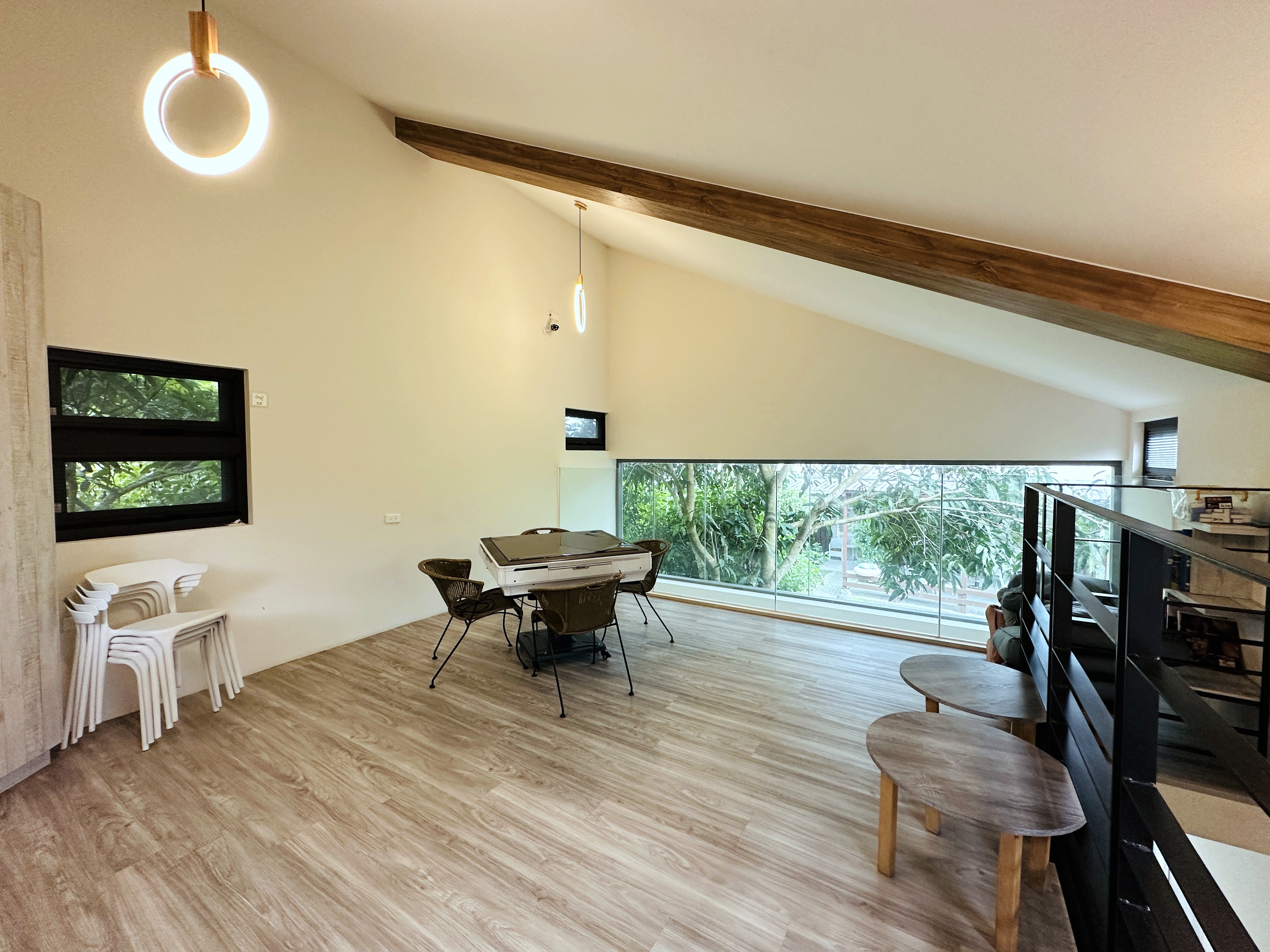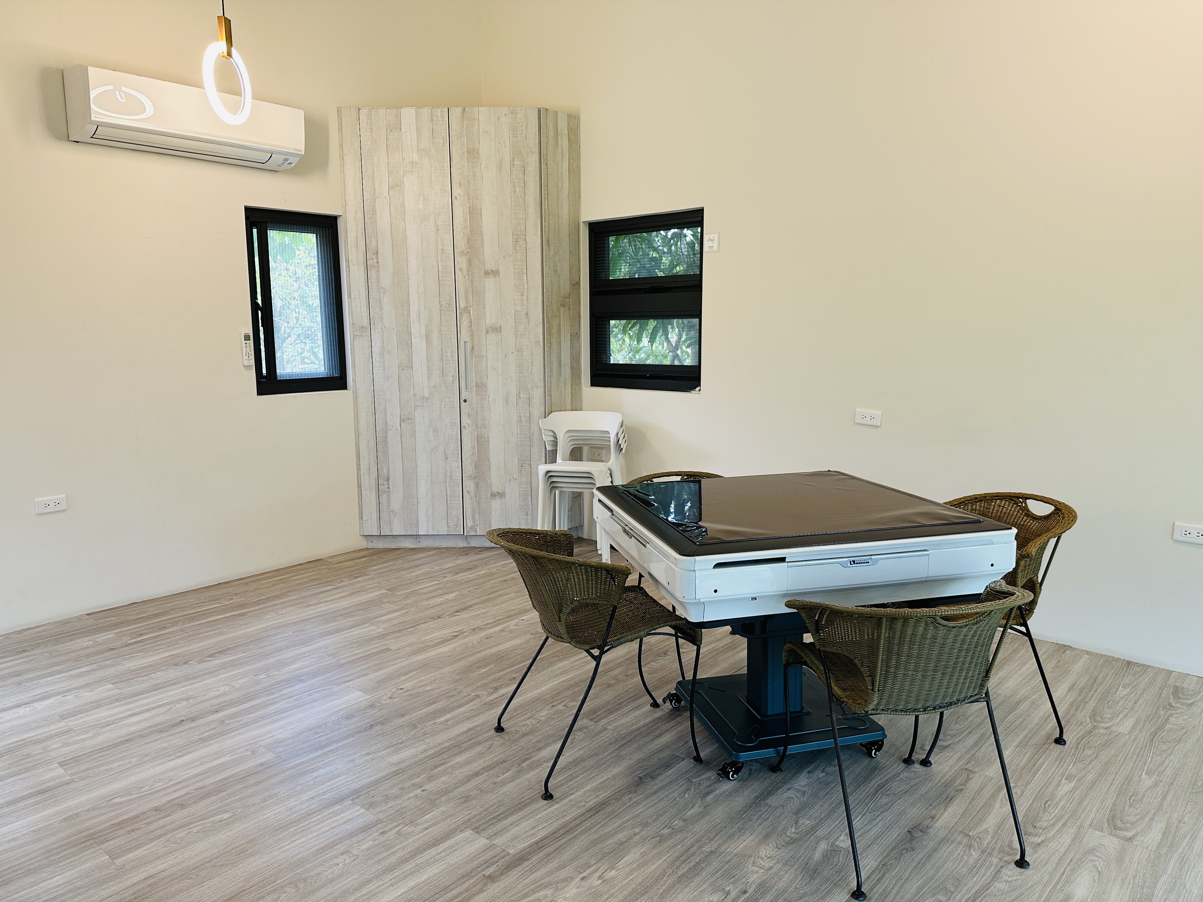 沿著樓梯走上二樓,空間一樣寬敞明亮,這裡放了一張電動麻將桌,讓大人可以摸個幾圈放鬆一下。備用的麻將後來還不小心成了小朋友的玩具,整個畫面其實蠻可愛的。