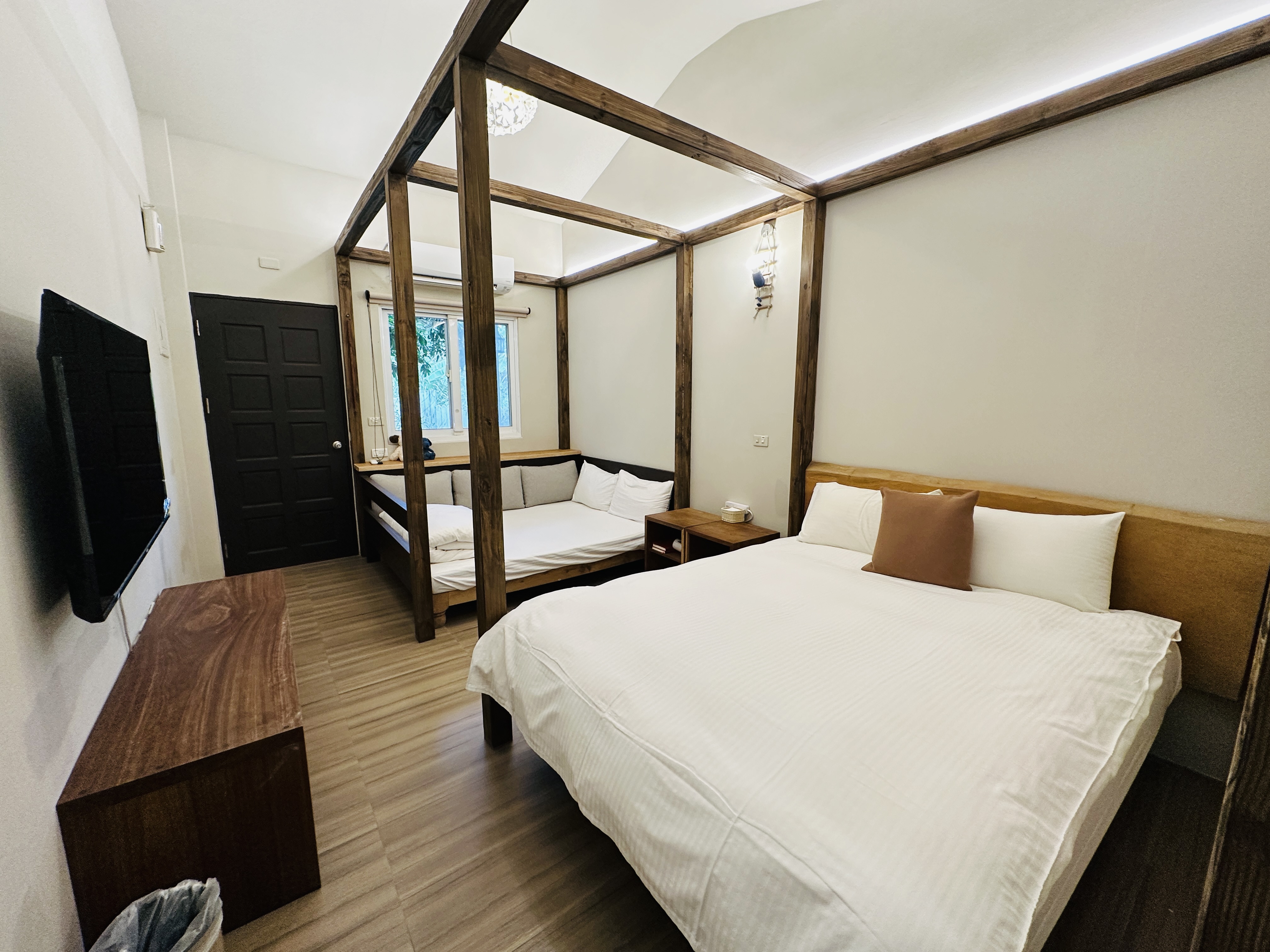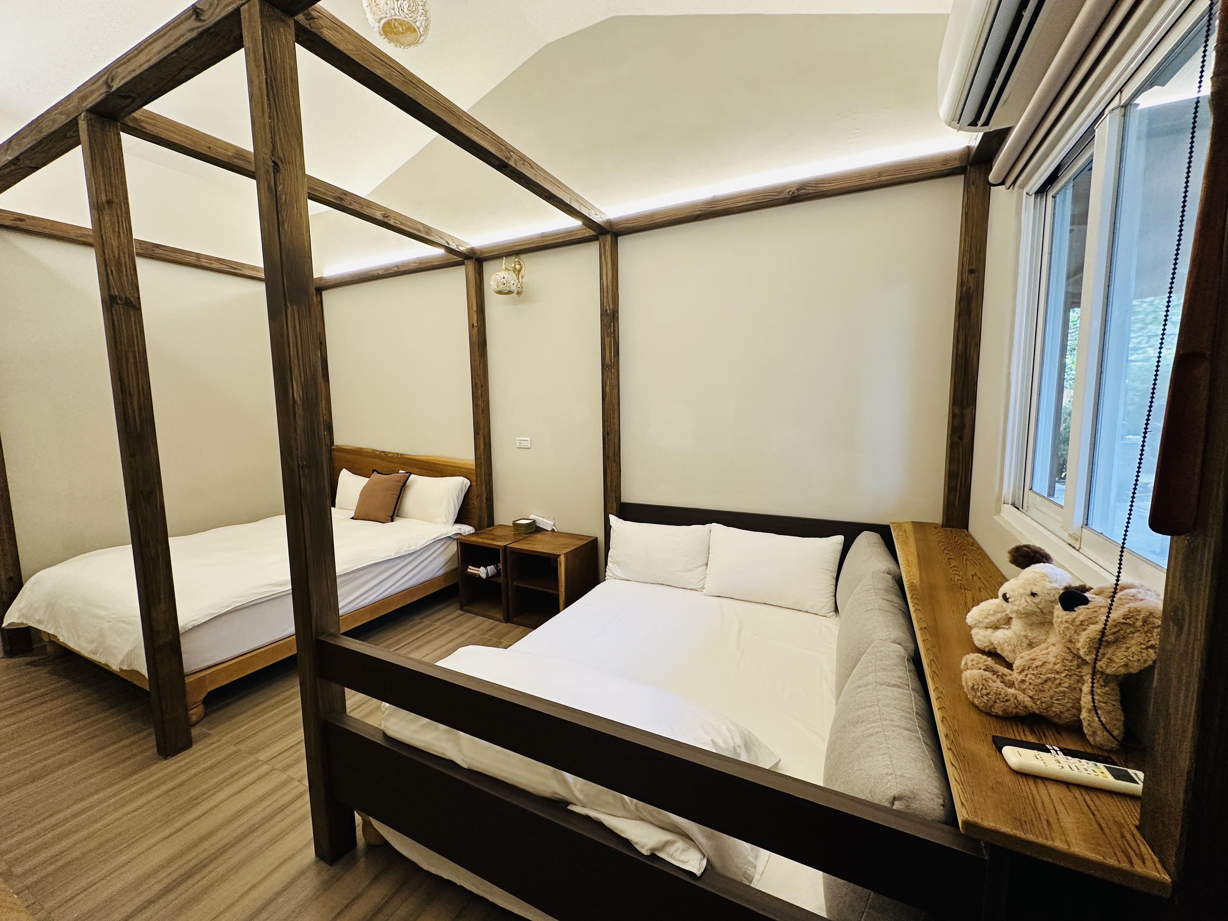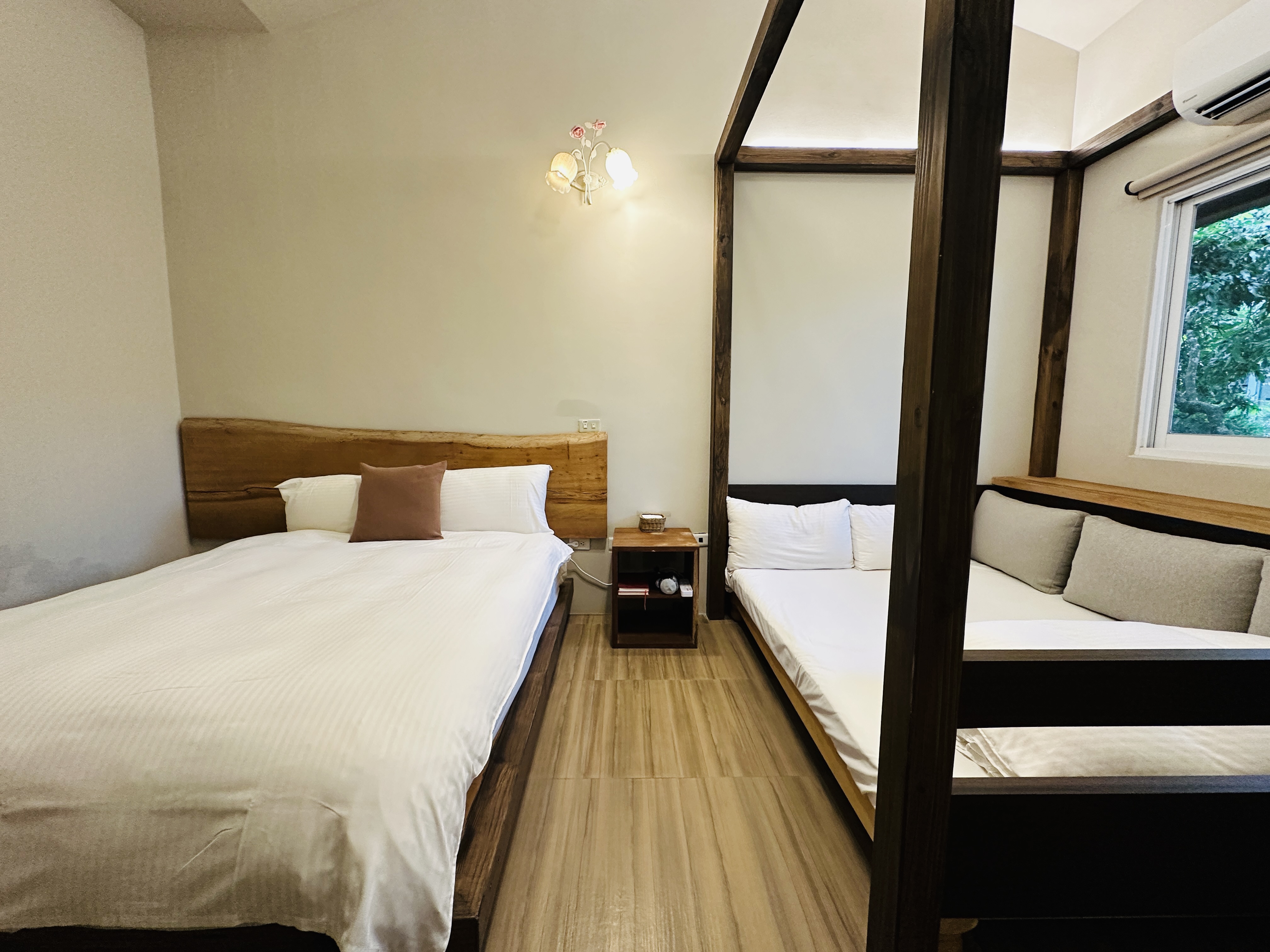靠窗的雙人床都有靠邊設計,不用擔心孩子睡到一半翻身掉下來,床墊的硬度也很剛好,隔天起床完全不會腰酸背痛,晚上睡起來也非常安靜