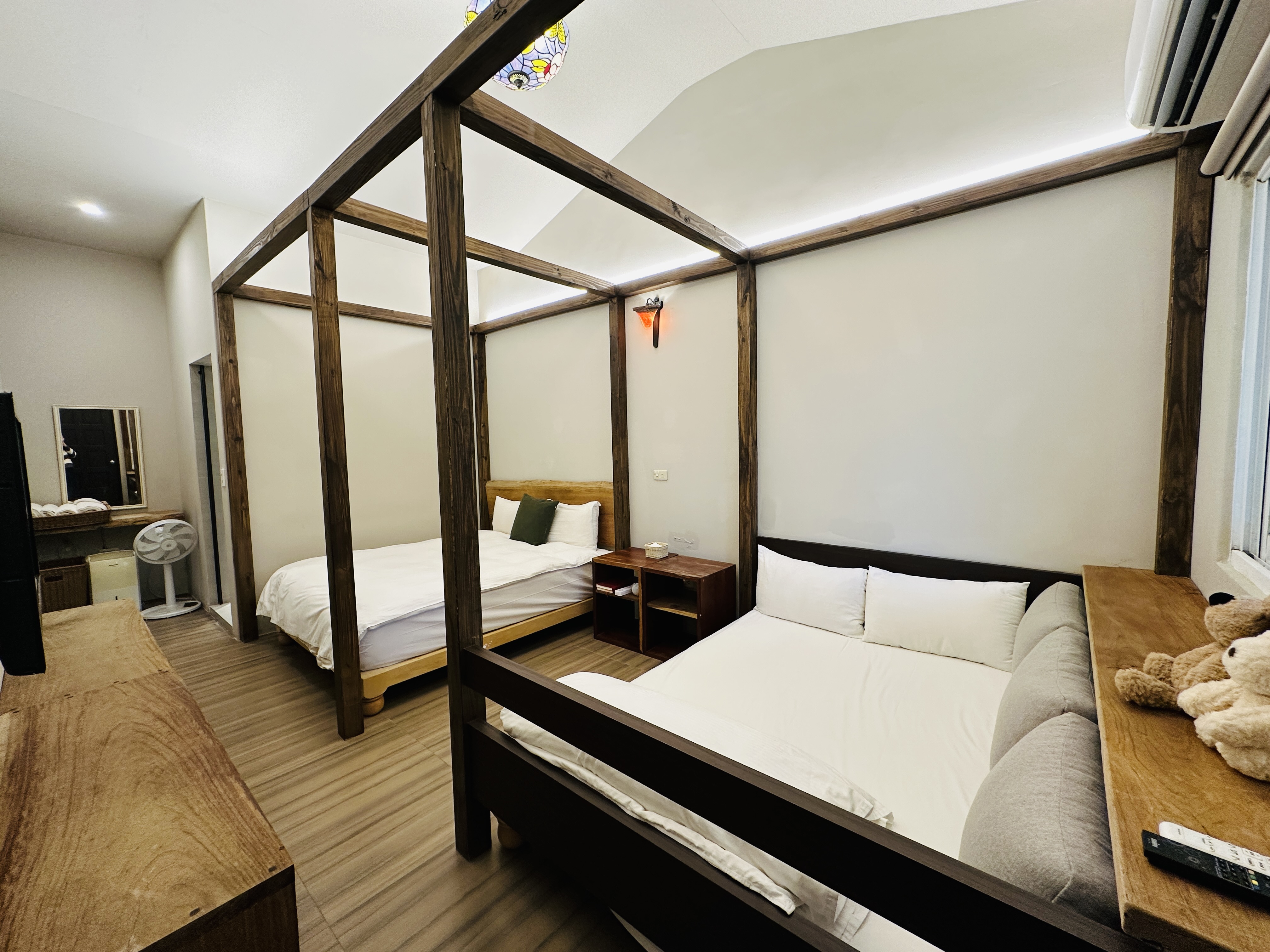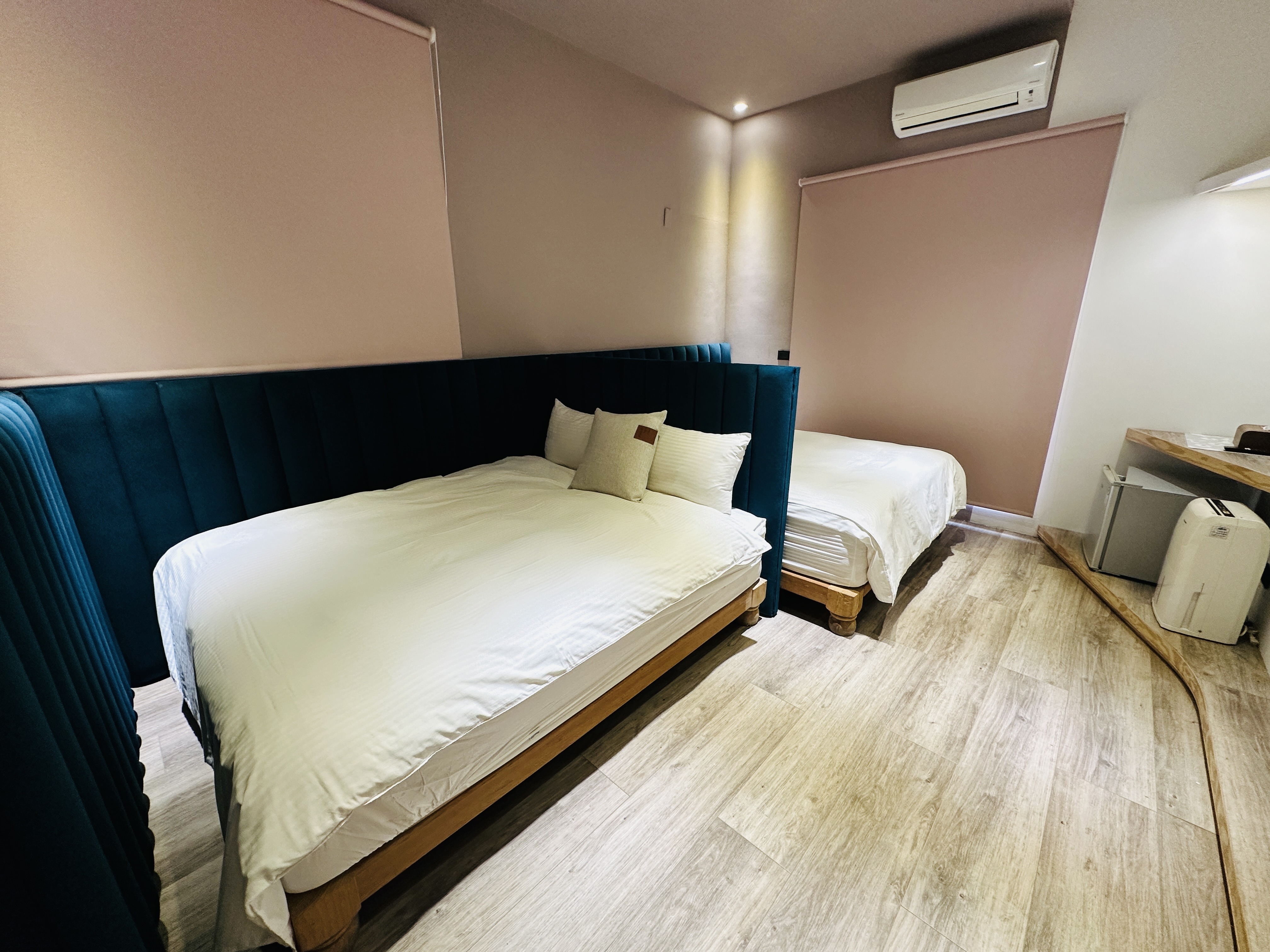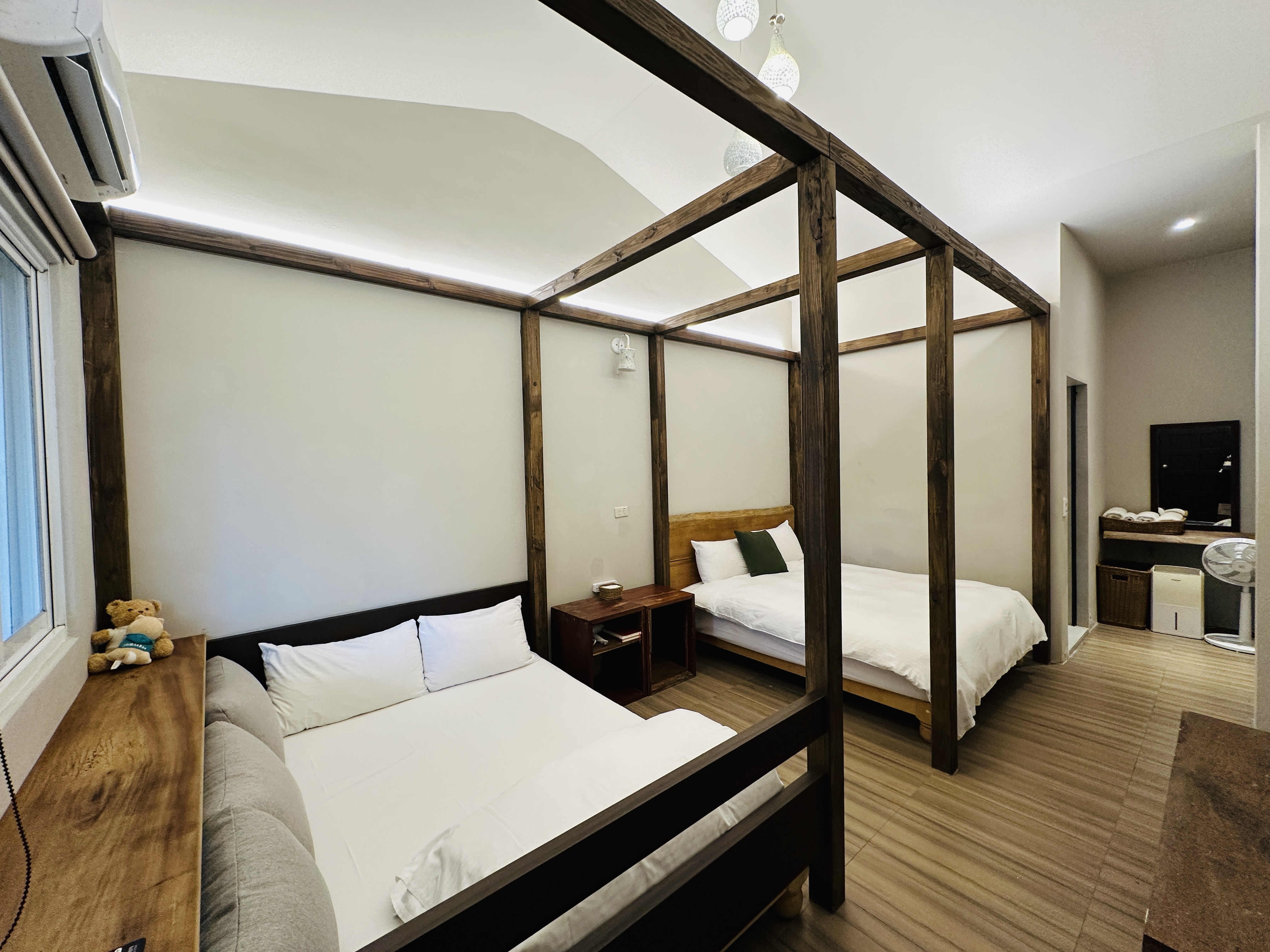 靠窗的雙人床都有靠邊設計,不用擔心孩子睡到一半翻身掉下來,床墊的硬度也很剛好,隔天起床完全不會腰酸背痛,晚上睡起來也非常安靜