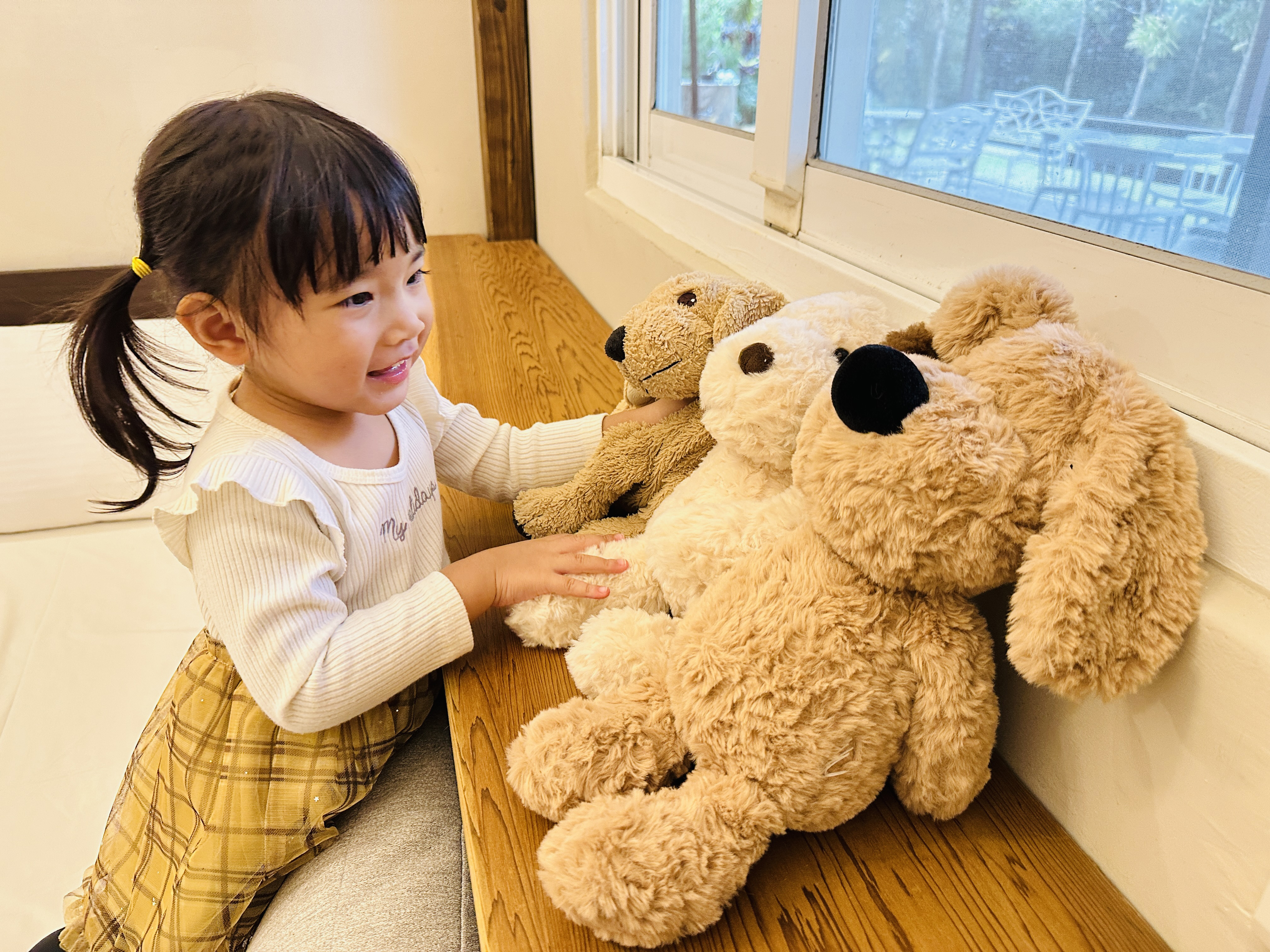 房內還擺放了可愛的狗狗娃娃,直接擄獲紜紜的少女心,一進房就抱著不放。