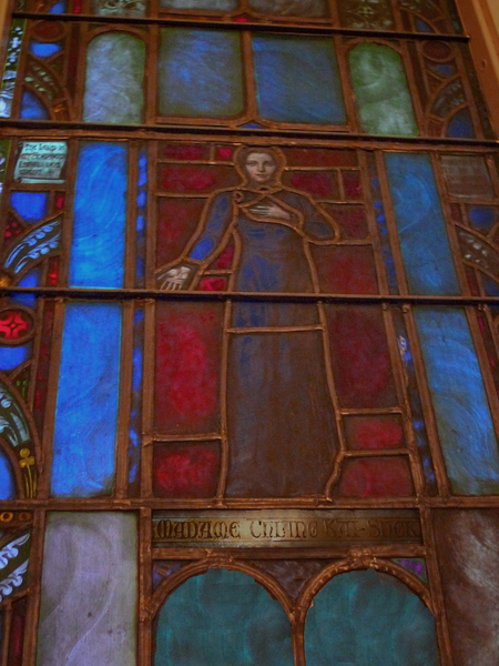 宋美齡天生的風采與魅力,在二次世界大戰中展現無遺。她所呈現的是一個大格局,鮮少能有一個女人能做到像她這樣的地步,她是一個模範,不僅是女性的模範同時也是所有第一夫人的模範,她的人生就是一個傳奇,是一部中國近現代史的縮影。宋美齡不僅為中華民國贏得寶貴的國際同情和支援,還把中國現代女性的美好形象推向全世界,成為「前無古人、後無來者」的第一夫人。這幅深藏在教堂彩繪玻璃中的宋美齡肖像,值得大家前來親睹宋美齡的傳奇投影,值得大家前來細細品思。